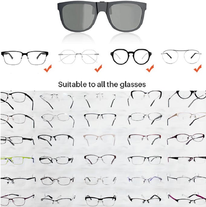 普段使用している眼鏡にクリップを挟み込むだけで装着完了です。