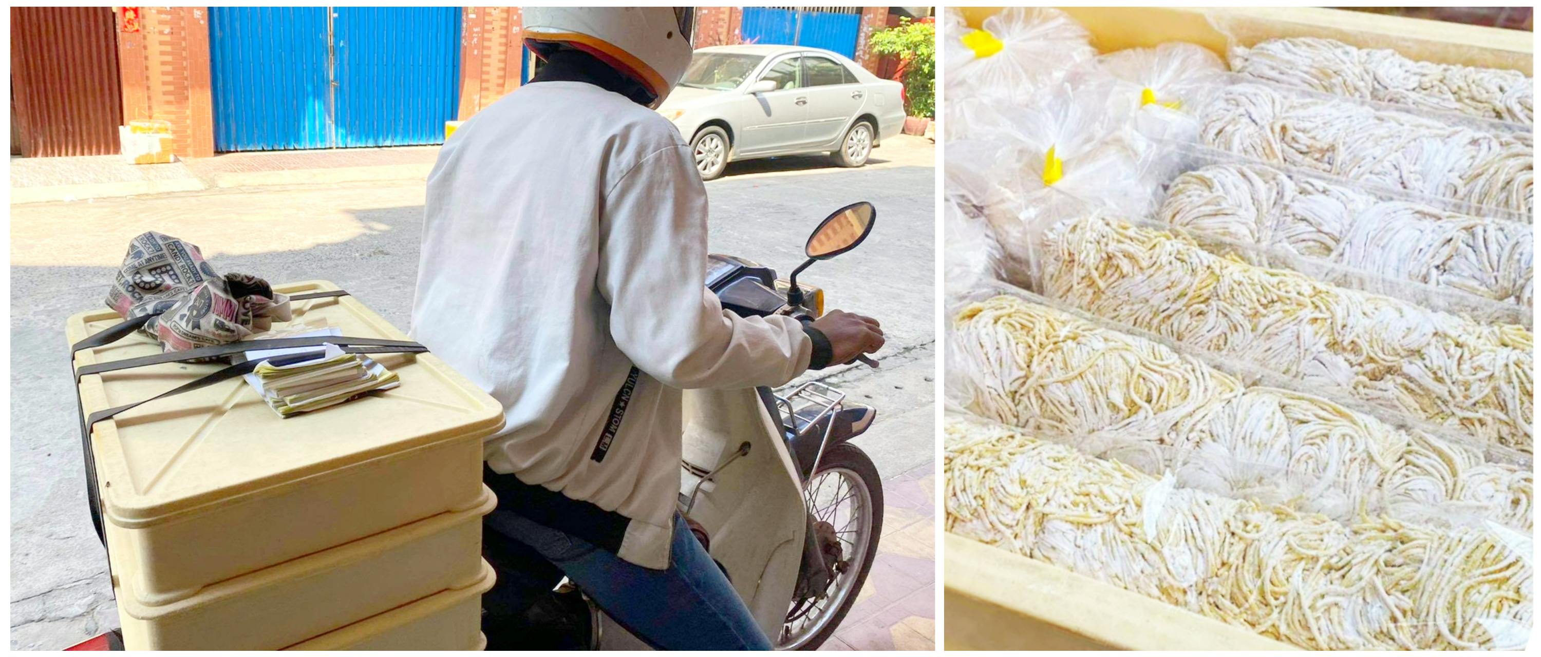 プノンペン市内の日本食店を中心に、中華麺やうどんなどを卸売しています。