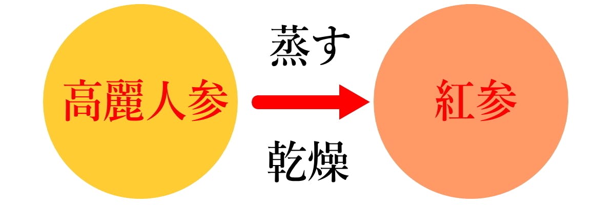 「紅参」とは、一般的に「高麗人参の根を水洗後、表皮をはがさずに蒸し、その後水分が12%以下になるまで丁寧に乾燥させたもの」のことを言います。高麗人参を乾燥する過程で、赤褐色・黄土色に変化することからそのように呼ばれています。