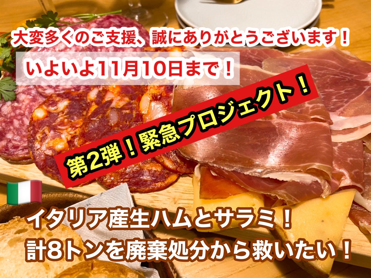残り12時間をきりました!!『第2弾!!イタリア産生ハム(プロシュート)とサラミ、合計8トンの在庫を廃棄処分から救いたい』