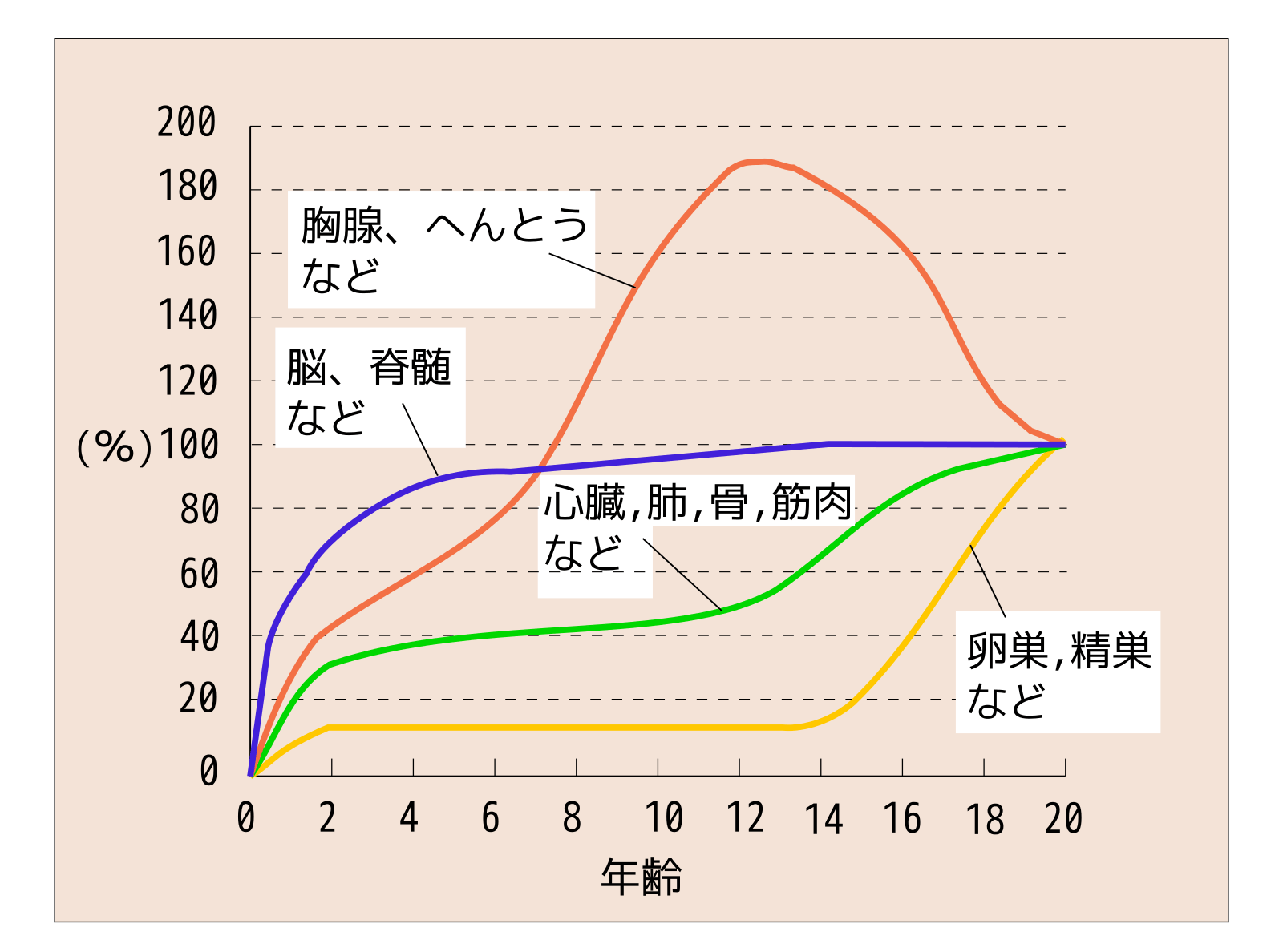 運動神経を決める脳、脊髄などの【神経型】と呼ばれる分野(紫色の線)は3歳の時点で70〜80%、6歳で90%、12歳でほぼ100%決まってしまいます❗️