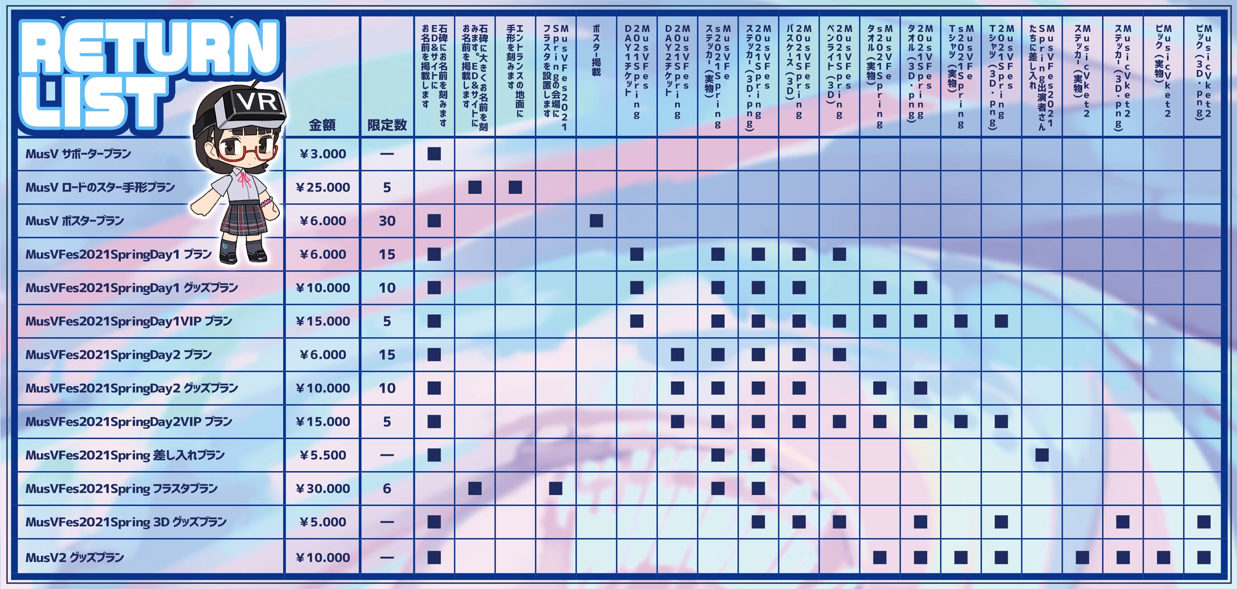 バーチャルとリアルの垣根を越えて楽しんでいただける様々なプランをご用意しましたので、下記のリストでリターンをご覧ください!