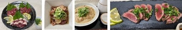 ・たたき・・・馬肉の表面をあぶってあるため香ばしくとても美味しいです。ポン酢でお食べ下さい。