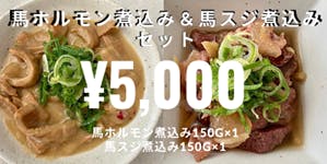 馬のホルモン煮込みは、熊本肥育のホルモンに、ニンニク、玉ねぎ、鷹の爪を入れ何時間もじっくり煮込んで作ります。