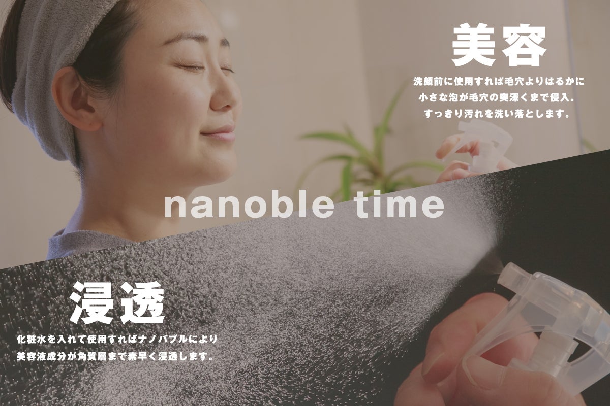 コンパクトナノバブル生成器「nanoble」で日々の生活に潤いをプラス。実証実験に基づいた活用事例をご紹介いたします。あなたが考えた用途をぜひ教えてください。皆様からの活用事例も募集中。皆で作る「nanoble」 のある新しい生活習慣。