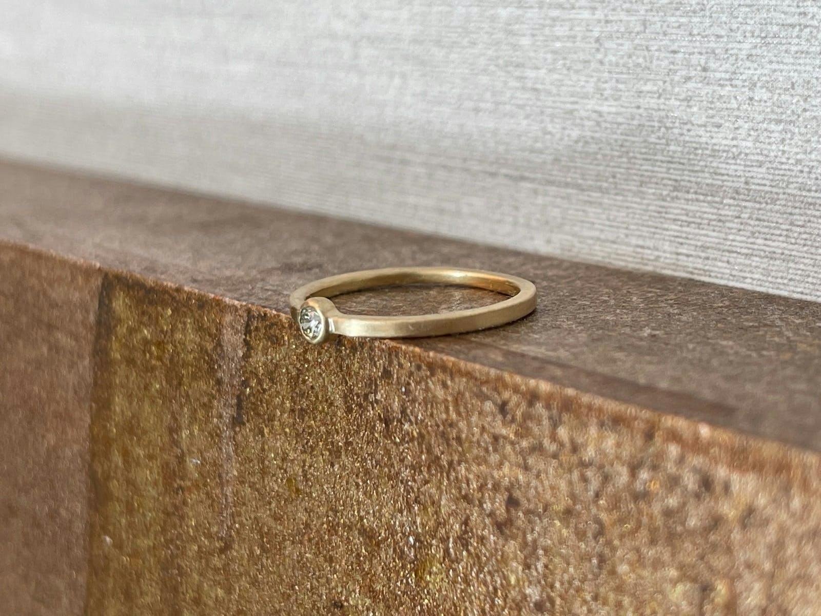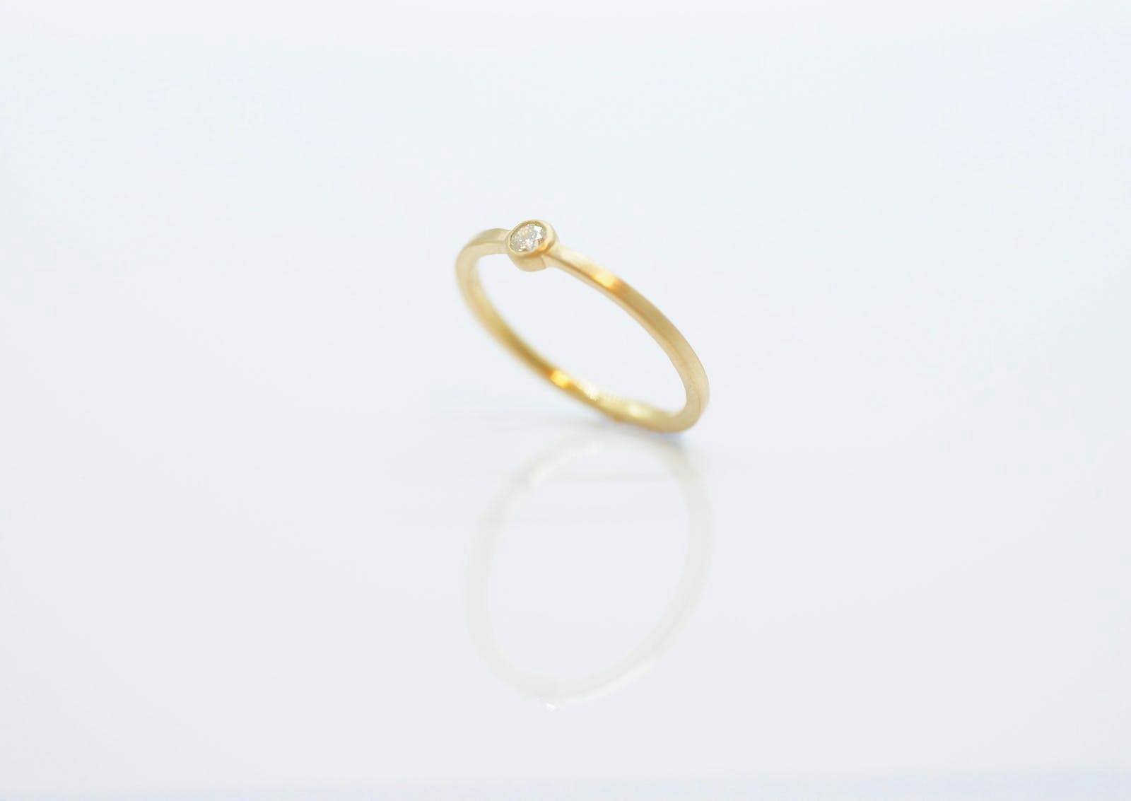 重ね付け用には細身でとにかくシンプル、リングだけでもきれいで、重ね付けしたときは主張しないようなデザインがベスト。