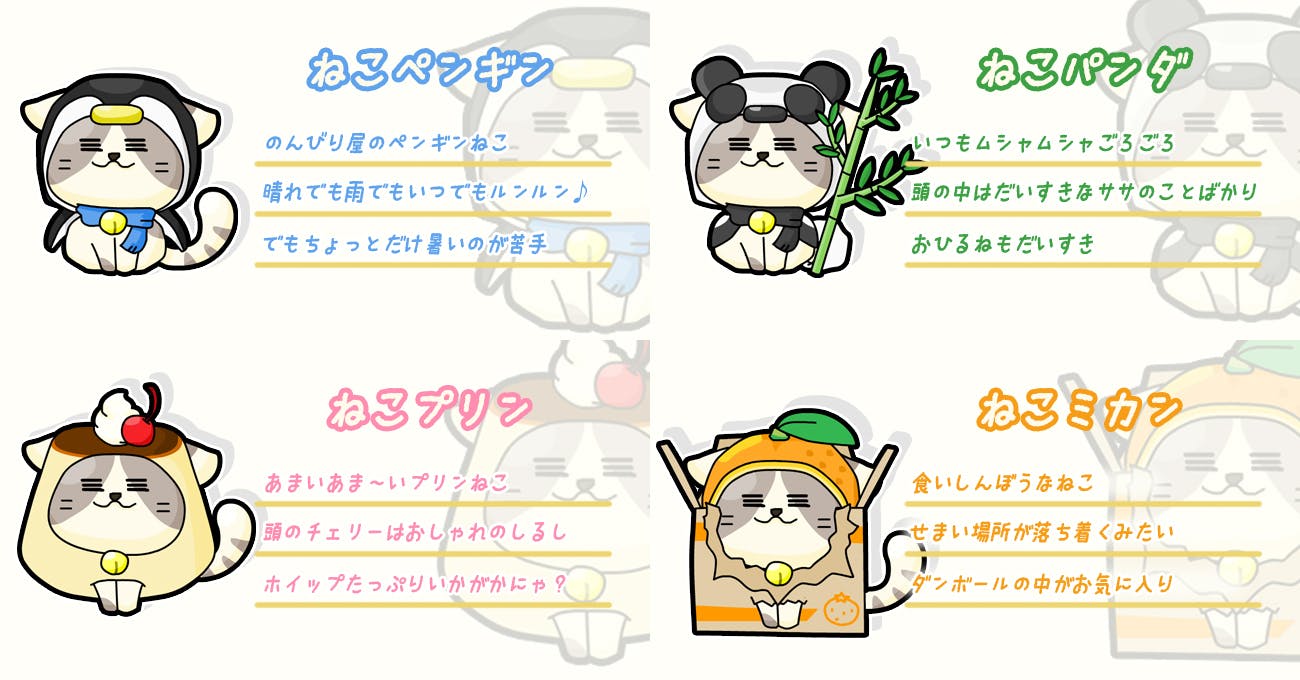 かわいいねこたちが様々なコスチュームを着るキャラクターコンテンツです。