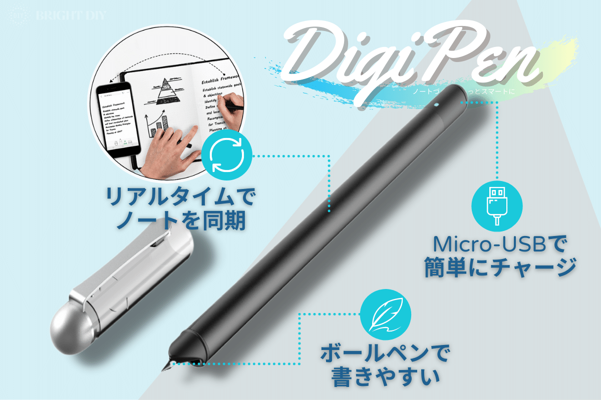 ① DigiPenは認識カメラ付きSmartPenです。B-noteと組み合わせ、読み込んだ絵や手書き文字をアプリがデータ化。