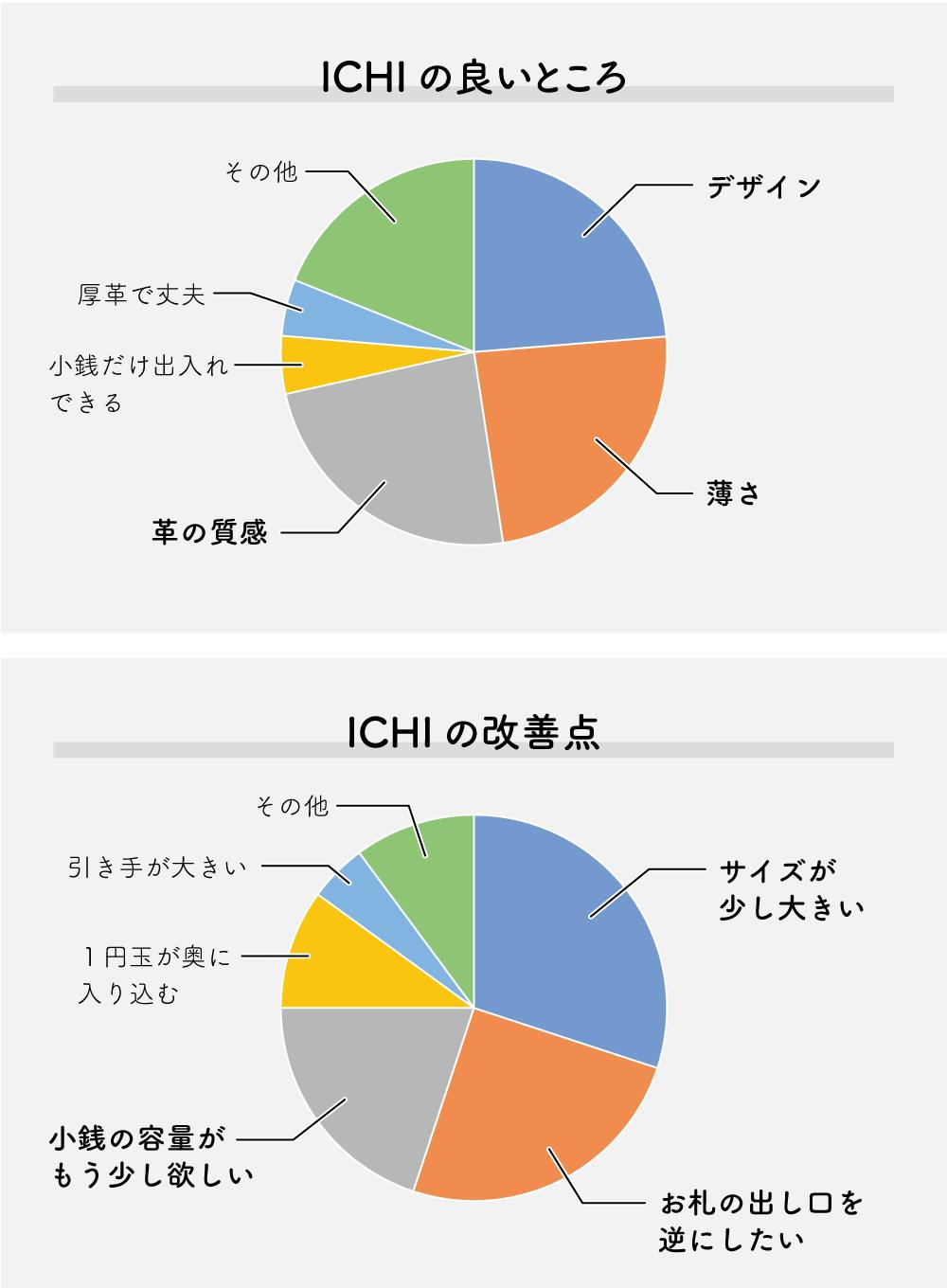 ICHIにはICHIの良さがあるため、本プロダクトがICHIの代わりになるわけではなく、ICHIとは棲み分ける形で、私たちmokuの財布ラインナップにしたいと考えています。