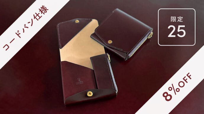 ご支援いただいた「小さく薄い財布Saku」よりコードバン仕様・春カラー仕様が発売しております。