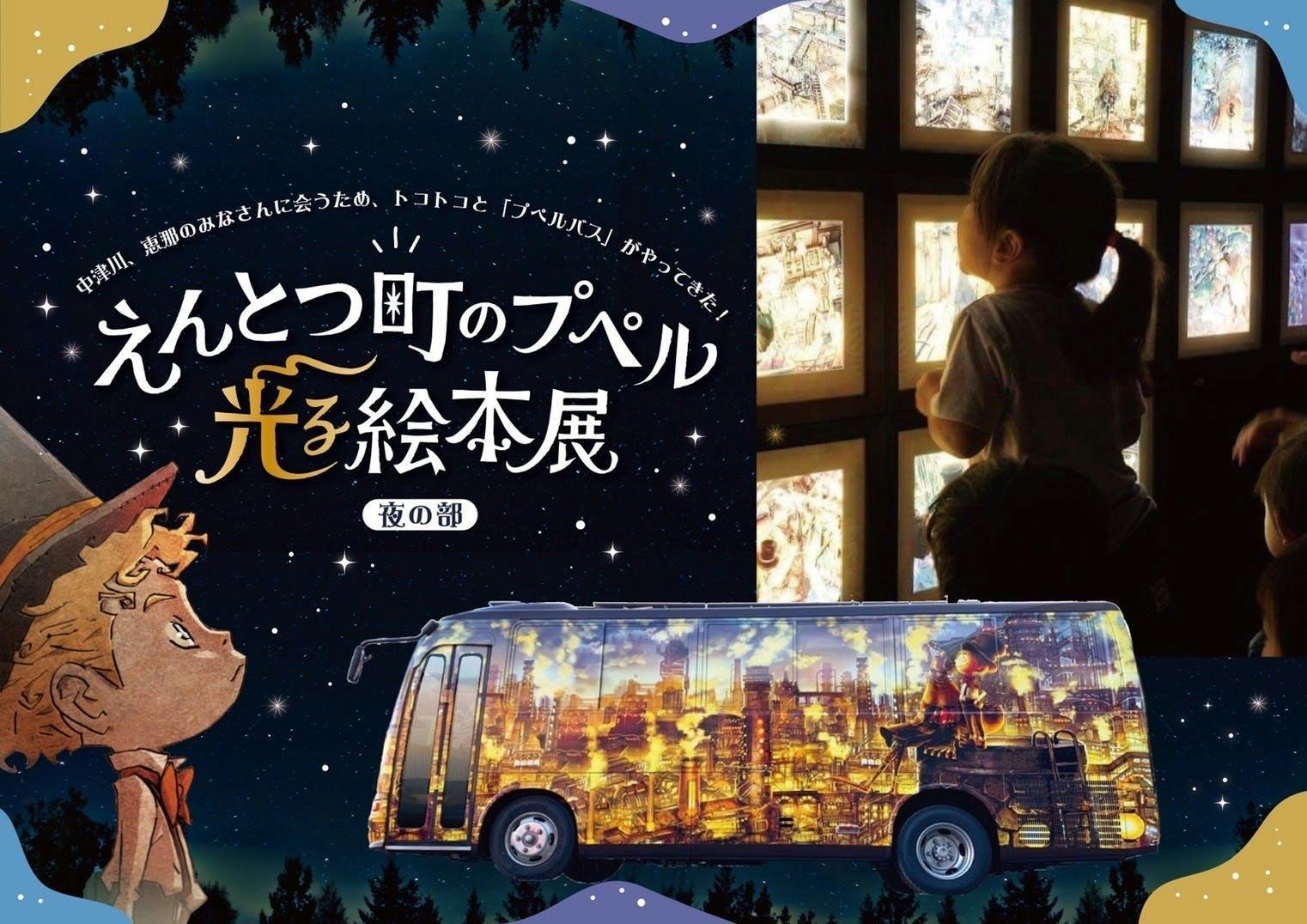 プペルバスは光る絵本がバスに乗ってわたしたちに会いに来てくれるアートの個展です。