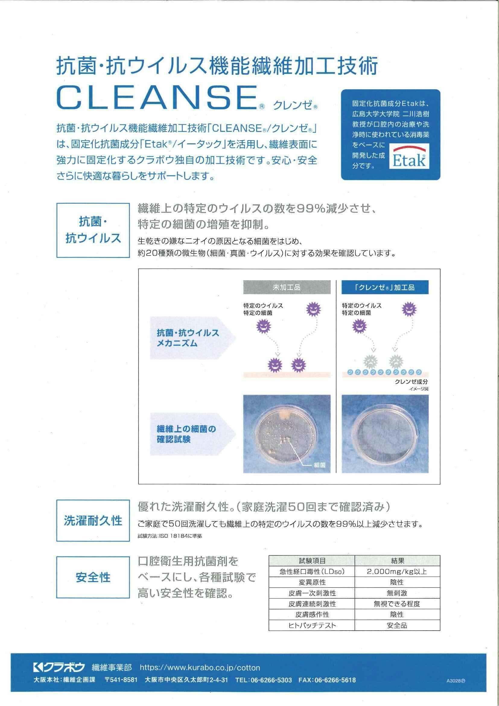 クレンゼという抗菌・抗ウイルス加工処理が施された生地を使用しております。