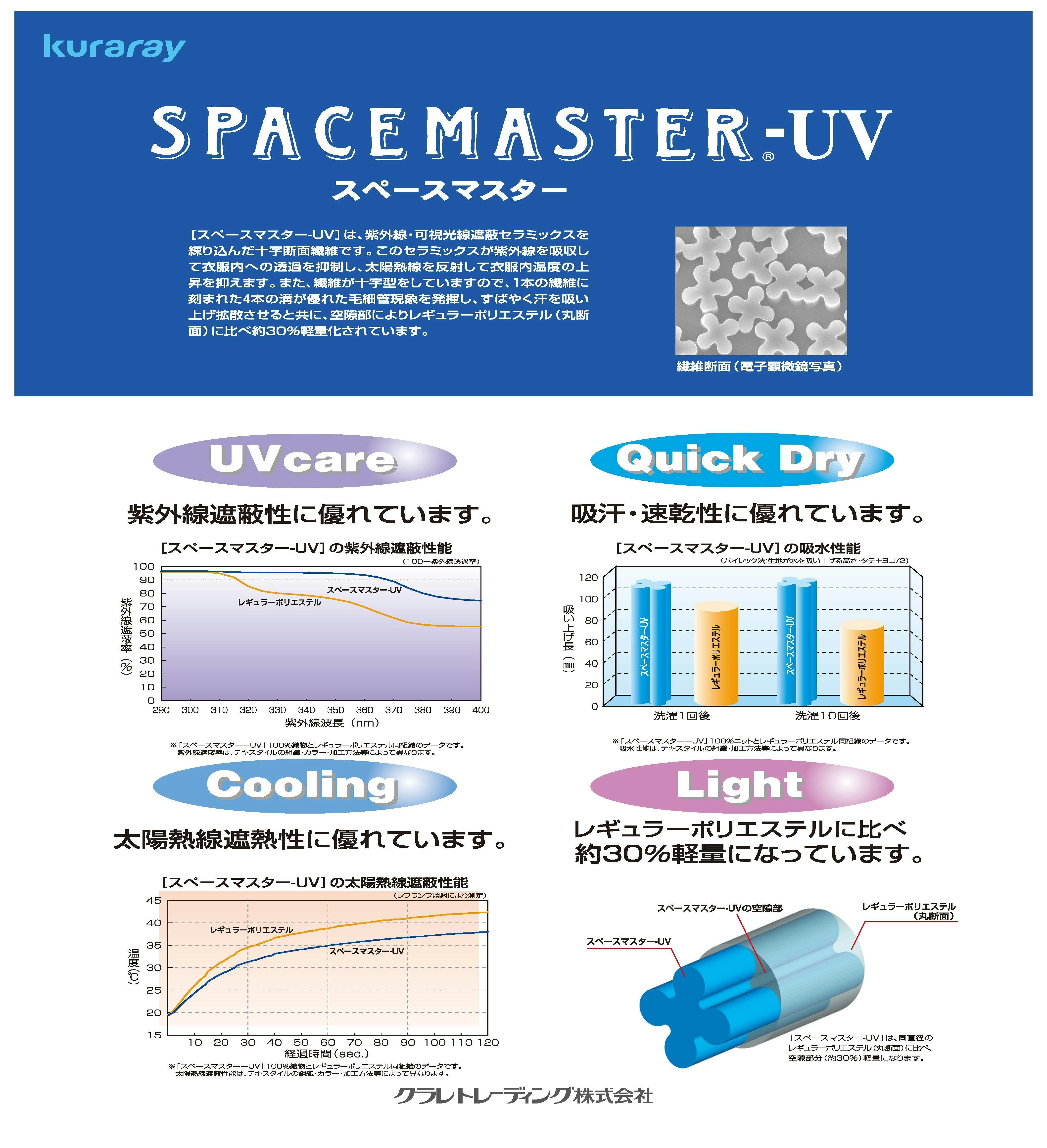 スペースマスターUVという紫外線を吸収し、可視光線(熱線)を反射するセラミックを練り込んだ十字断面構造の繊維を使用しております。
