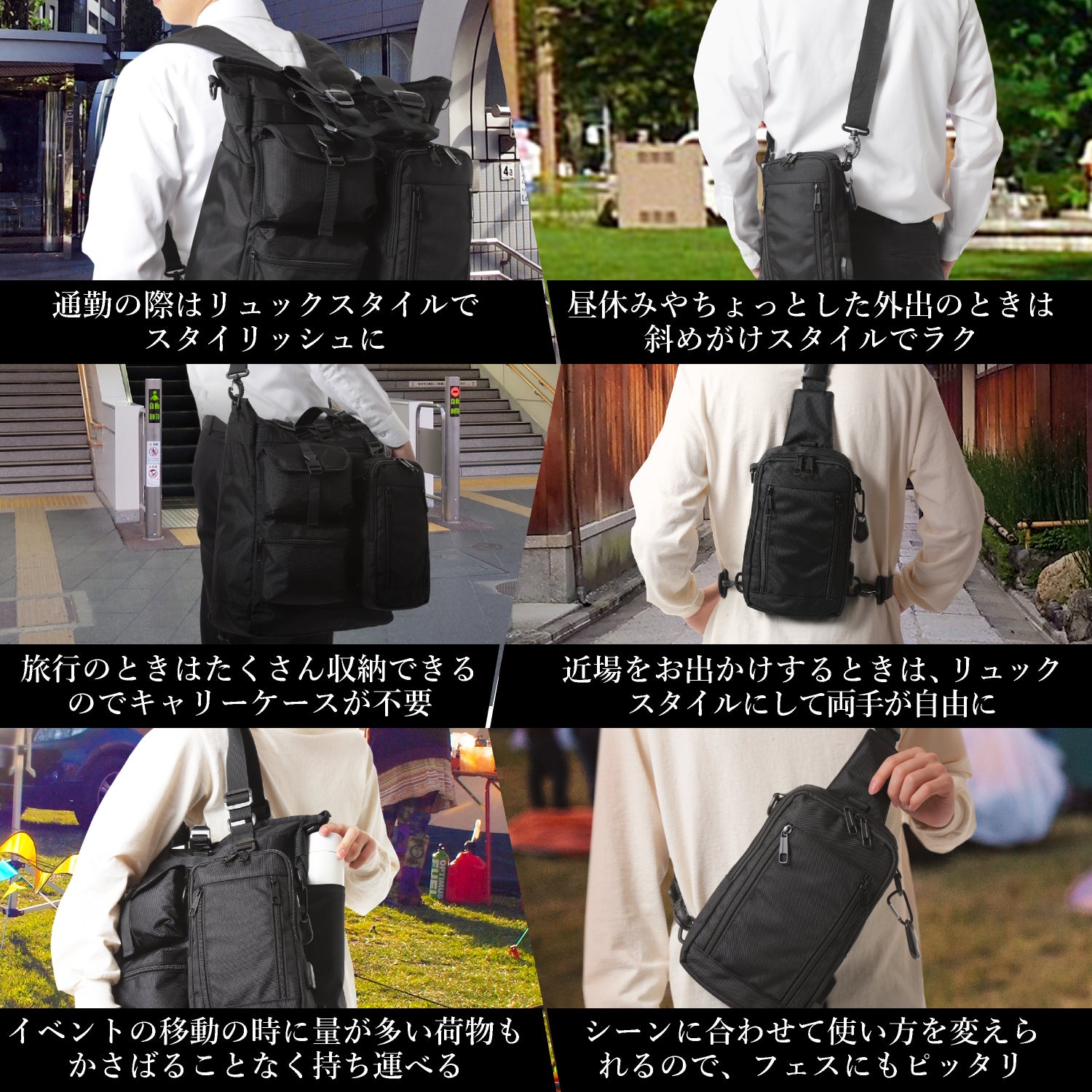 (1) 休日用のボディバッグが仕事用のトートバッグに統合(インテグレート)することが可能に