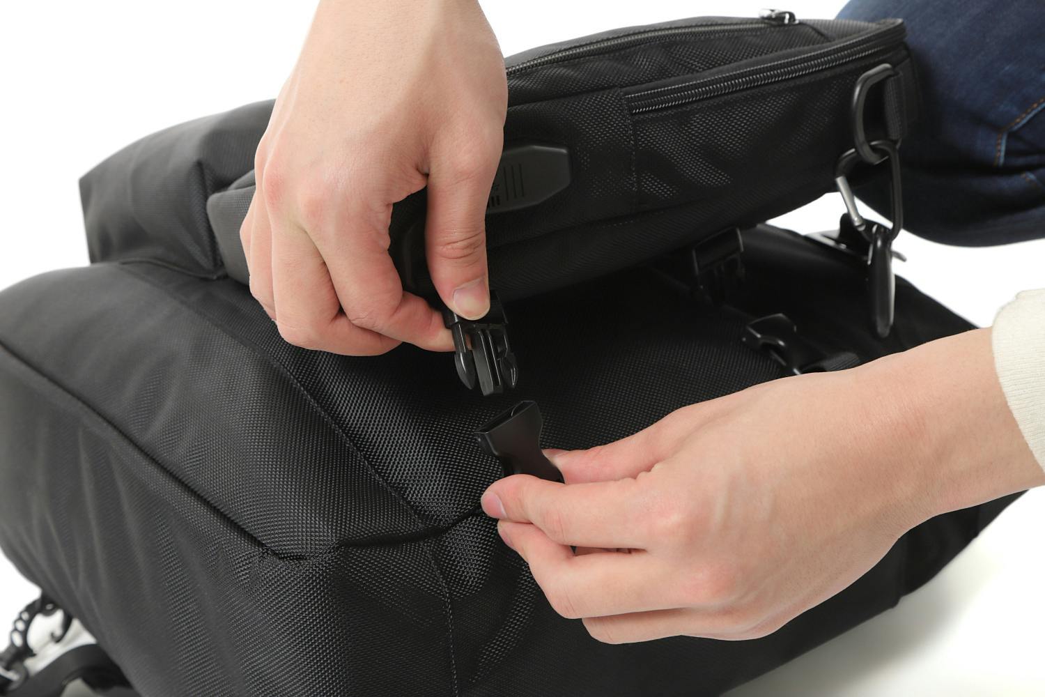 (2)財布や鍵、定期、スマホ、大事なものを忘れない「忘れ物ゼロの快適バッグ」に変身!!仕事と遊 び用バックが5秒で合体!持ち物入れ替え不要!