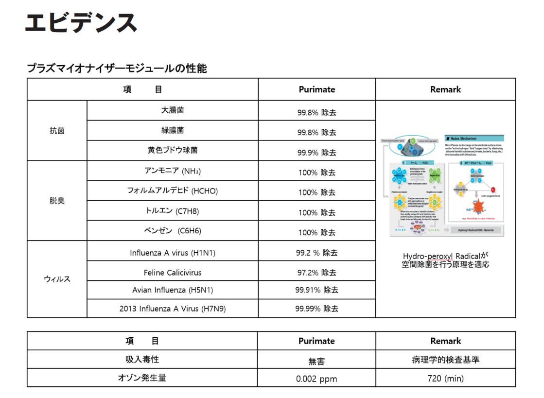 本製品のコア技術であるイオン発生モジュールは、もともとサムスン電子が企画し、プラズマ研究員たちがオゾン量を減少させるために、イオンなどを活用し開発した製品です。その後IMH社に分社化し、今は独立して自社製品の性能改善を通じて特許に登録したイオン発生モジュールを本空間除菌機に内蔵した製品です。