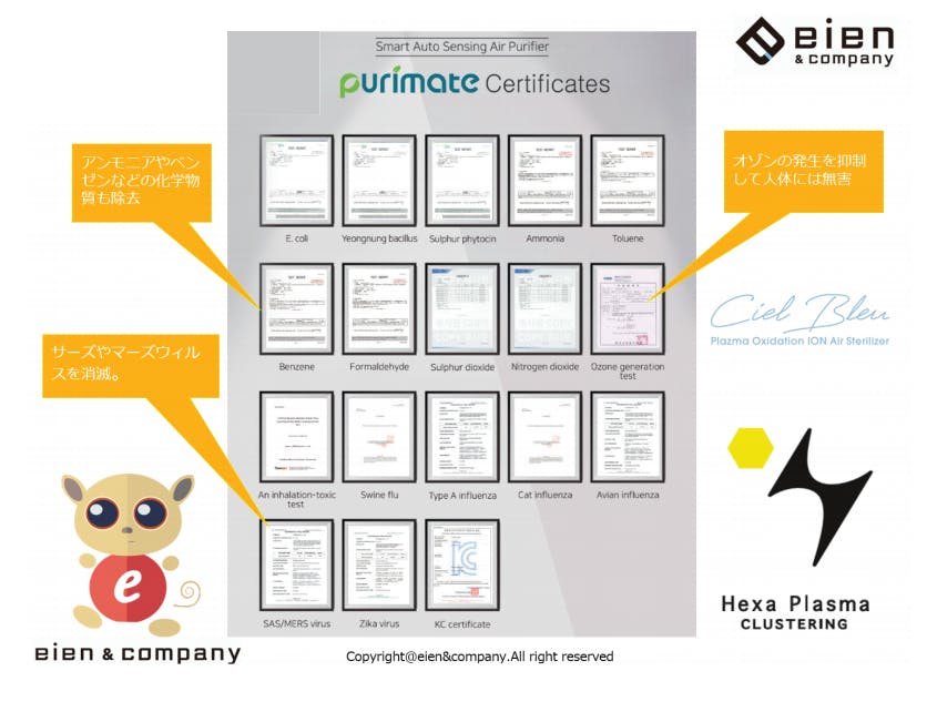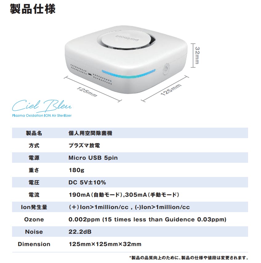 ※本製品は医療機器ではありません。全てのウイルス・菌をテストしたわけではないので、実験した対象以外のウィルスなどもすべて除去できるものではありません。