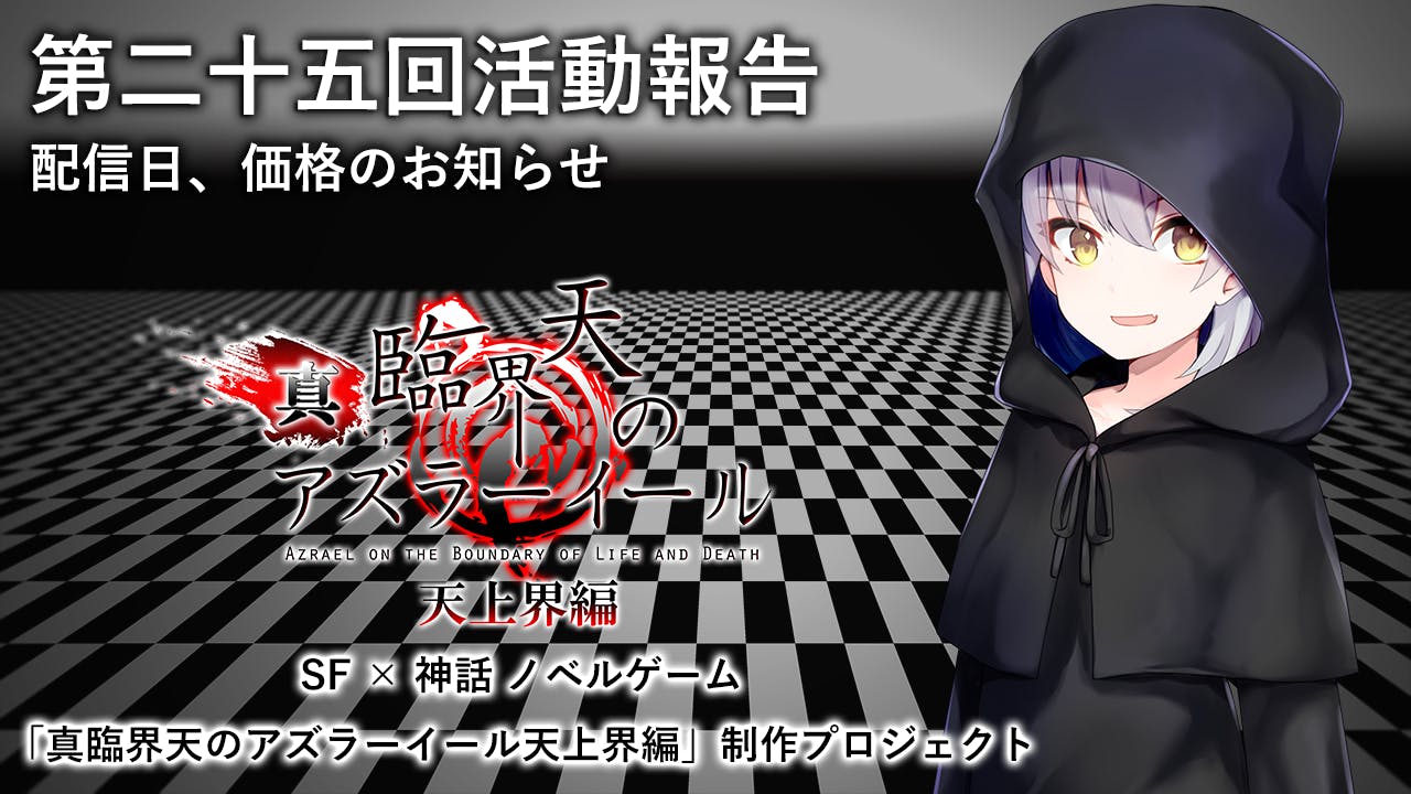 2022/04/03 22:08お世話になっております。第二十五回の活動報告になります。一部ボイスの入れ替えを除き、作品が概ね完成いたしました。↓PVはこちらから↓OPムービーはこちらから現在はテストプレイヤーの方にプレイしていただいており、誤字脱字等を修正して配信準備完了となります。そして、配信日ですが……2022年4月28日(木)に決定いたしました!特に問題がなければ上記日程で配信いたします。なお、クラウドファンディングにて★4 本編ダウンロードコース ★9 本編ダウンロードカードコース★13 臨界天デジタルコンテンツセット [CF限定] ★14 臨界天コンプリートセット [CF限定] ★16 →Quantize_リミテッドコンプリートセット [CF限定]をリターンとしてご支援いただいた方は2週間前の2022年4月14日(木)に先行配信いたします。また、デジタルサウンドトラックもゲーム配信日と同じ日(4/28)に配信開始予定となっています。価格に関しましては……・パートボイス仕様『臨界天のアズラーイール』、パートボイス仕様『真臨界天のアズラーイール天上界編』2点セット…990円(込)・『臨界天のアズラーイール』デジタルサウンドトラック…550円(込)・『真臨界天のアズラーイール天上界編』デジタルサウンドトラック…880円(込)上記価格に決定いたしました。価格に関しまして、クラウドファンディングの各リターンより安価となっています。個人的にも安いと感じますが、多くの方に作品を知っていただき、プレイしてもらうためにも上記金額での配信を決めました。クラウドファンディング時にご支援いただいた皆様には大変申し訳ありませんが、皆様のご支援があったからこそ本作品を完成させることが出来ました。心苦しくはありますが、ご理解いただけますと幸いです。現在はデジタル設定資料集の作成を行っています。近日中に販売プラットフォームが決まりましたらご報告したいと思います。(BOOTHでの販売を予定)よろしくお願いいたします。紅音久遠 もっと見る