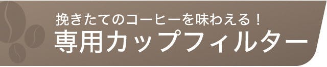 繰返し使える専用カップフィルター(大/小)が付属しますので、お好みのコーヒー粉を入れてセットするだけ。金属製メッシュ内蔵でペーパーフィルター不要なので経済的でエコ!