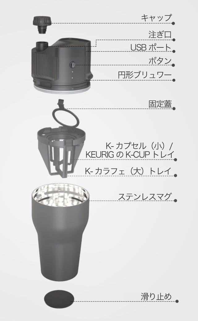 タンブラー型のコンパクトコーヒーメーカー・保温マグです。特別なテクニックは必要なく、誰でもどこででも、たった1分で美味しいコーヒーが淹れられます。