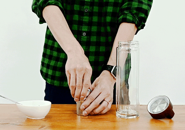 蓋をしめた茶こしをボトルにセッティングするだけ!