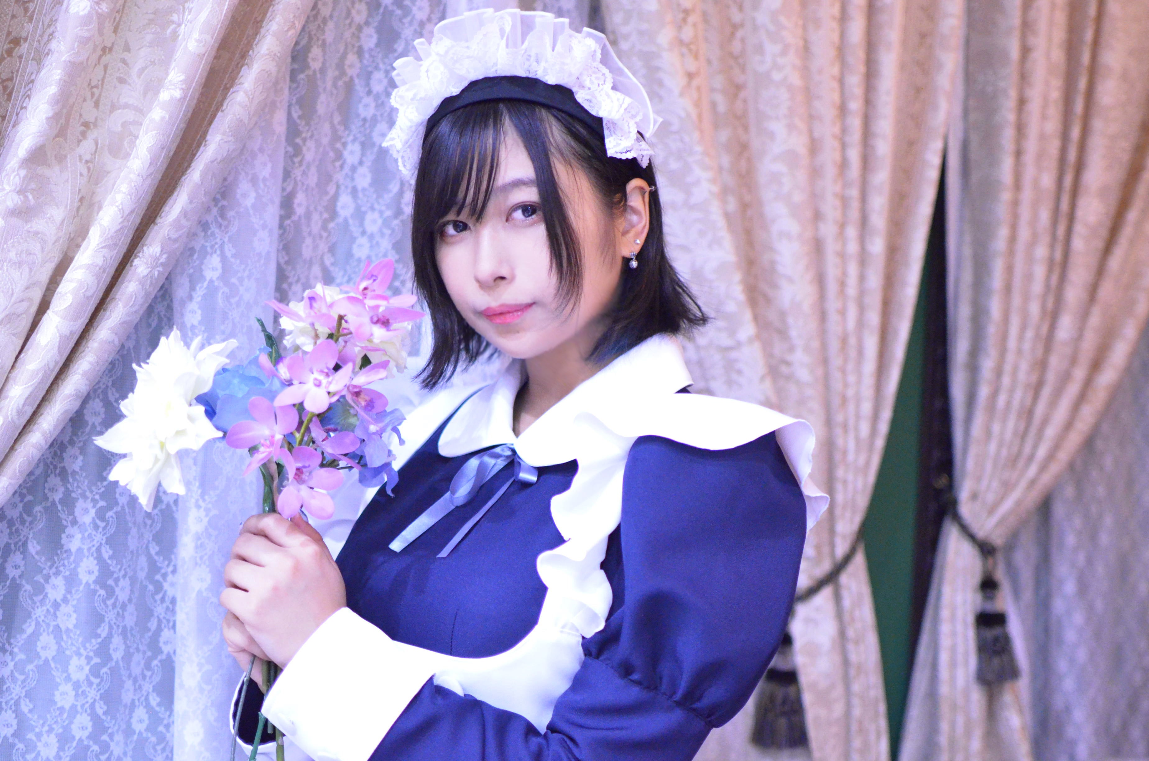 黒髪ロング姫カットのメイドです。