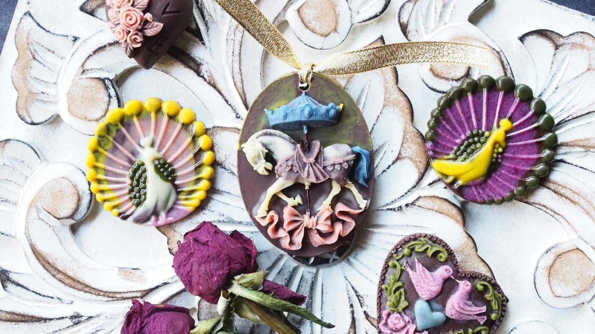 100%ナチュラルな植物性食品で色付けたローチョコレートです。
