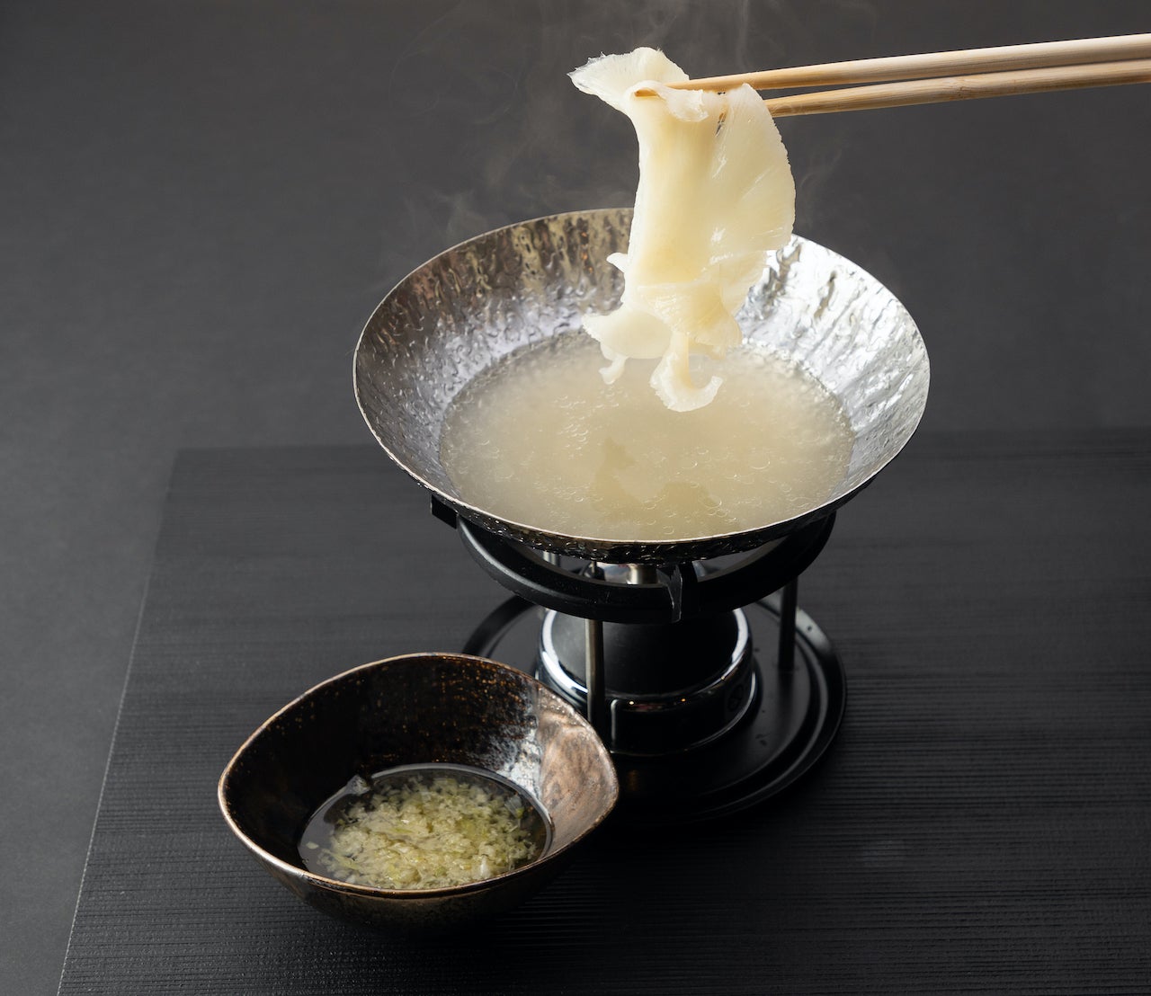 中華料理で用いられるXO醤を使い鮑を野菜と魚介と共にお出しさせていただいたり、フカヒレをしゃぶしゃぶで提供させていただいたりと様々な素材を使用します。