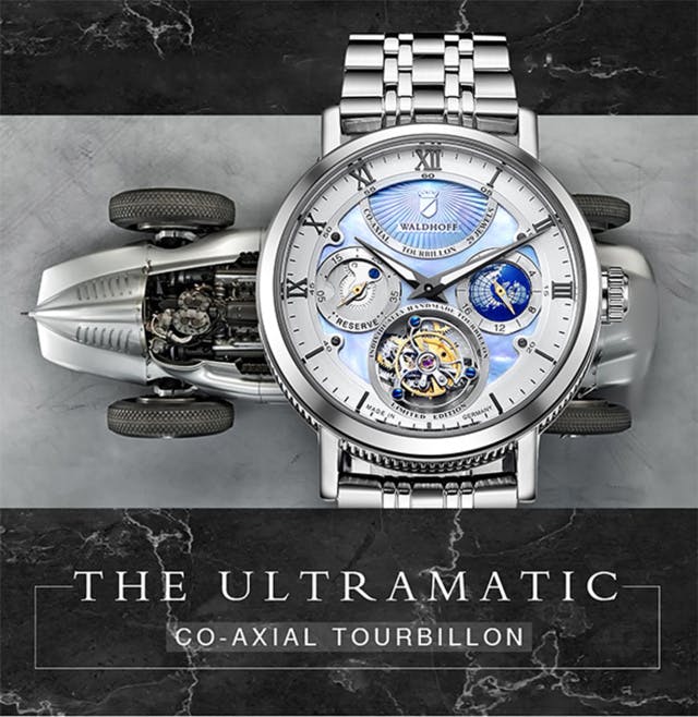 今回、machi-ya支援者の皆様に、WALDHOFF社が誇る手巻きトゥールビヨンに24時間表示機能と秒表示も搭載した「THE ULTRAMATIC」をご紹介します。
