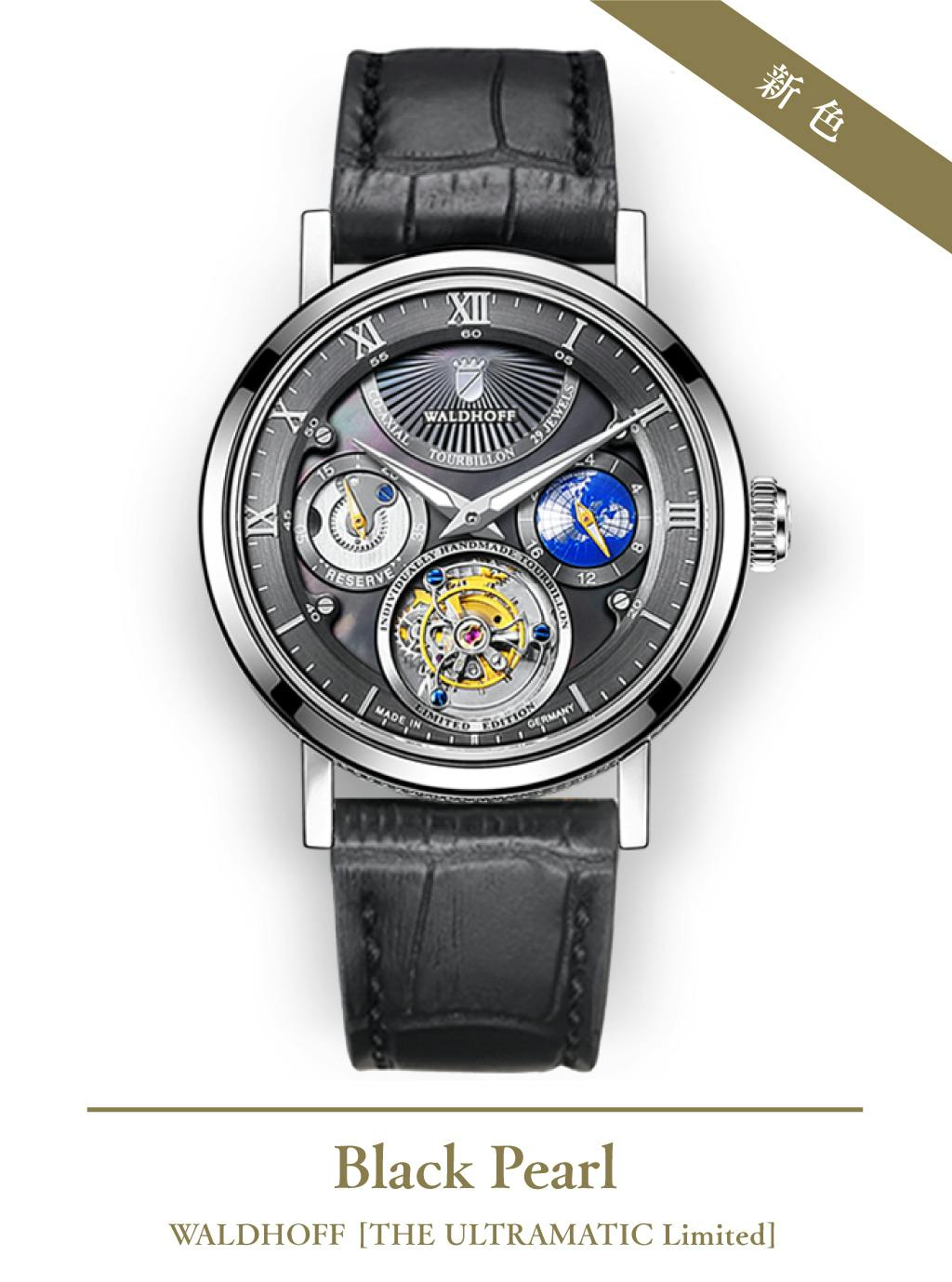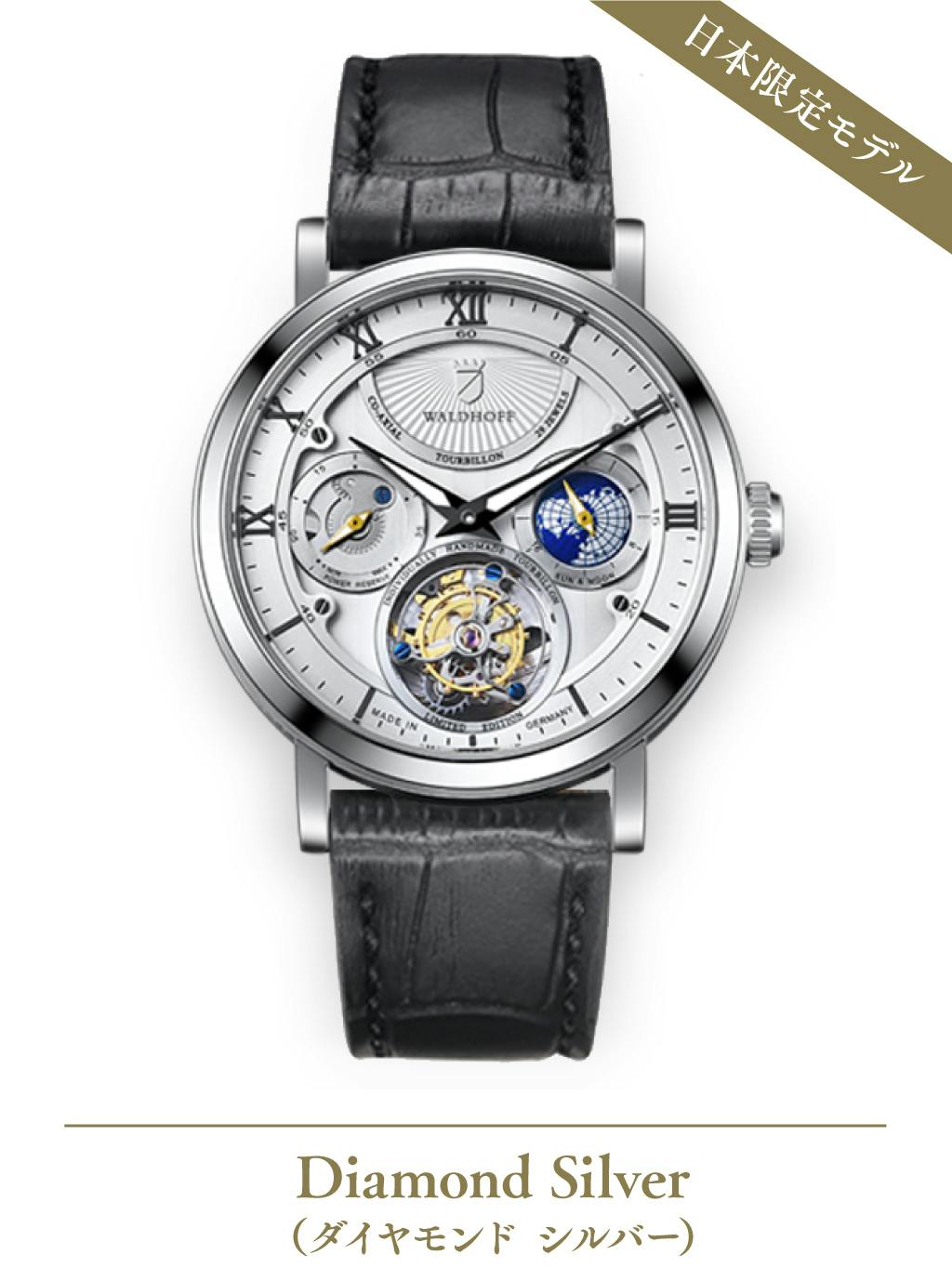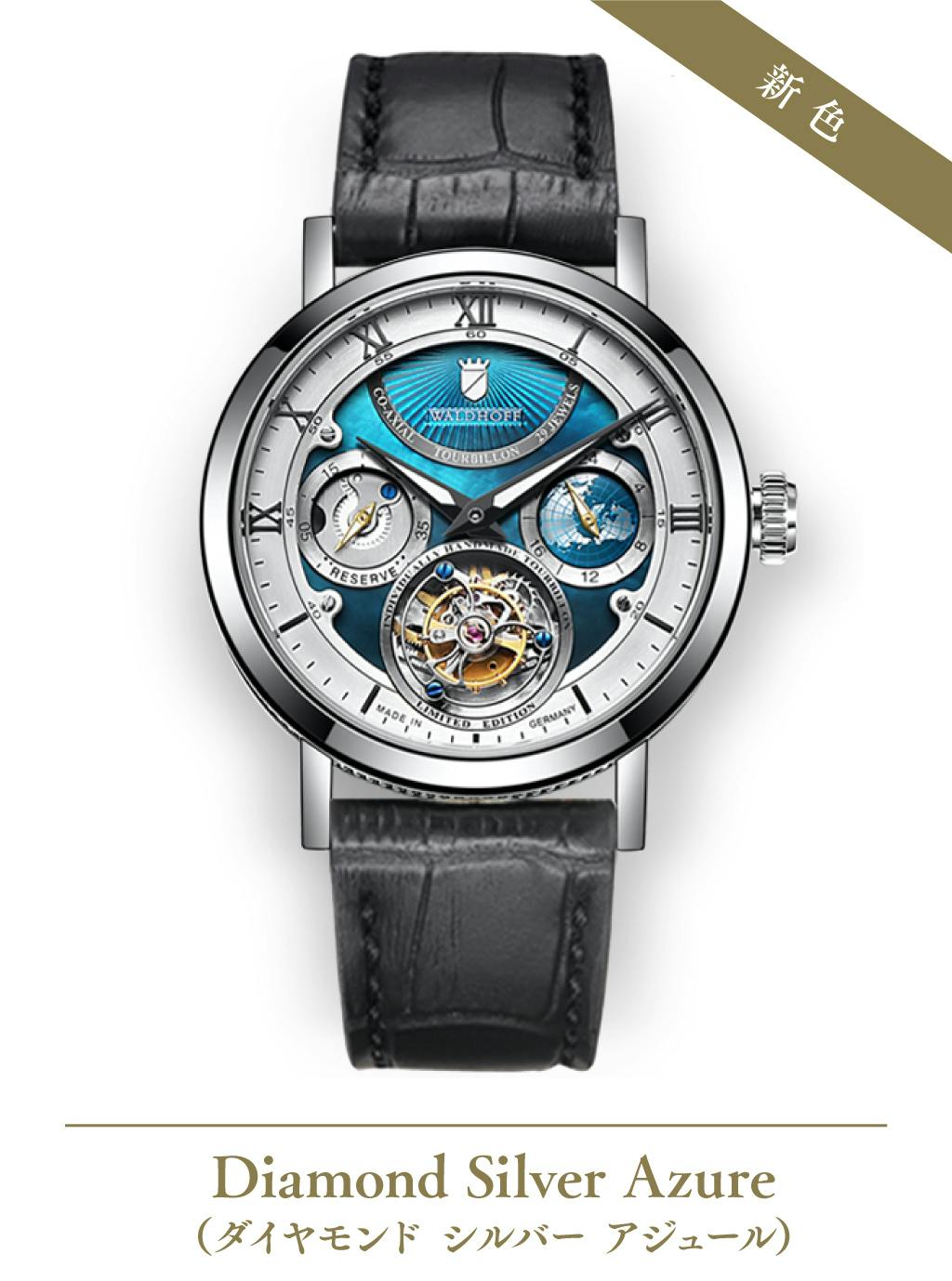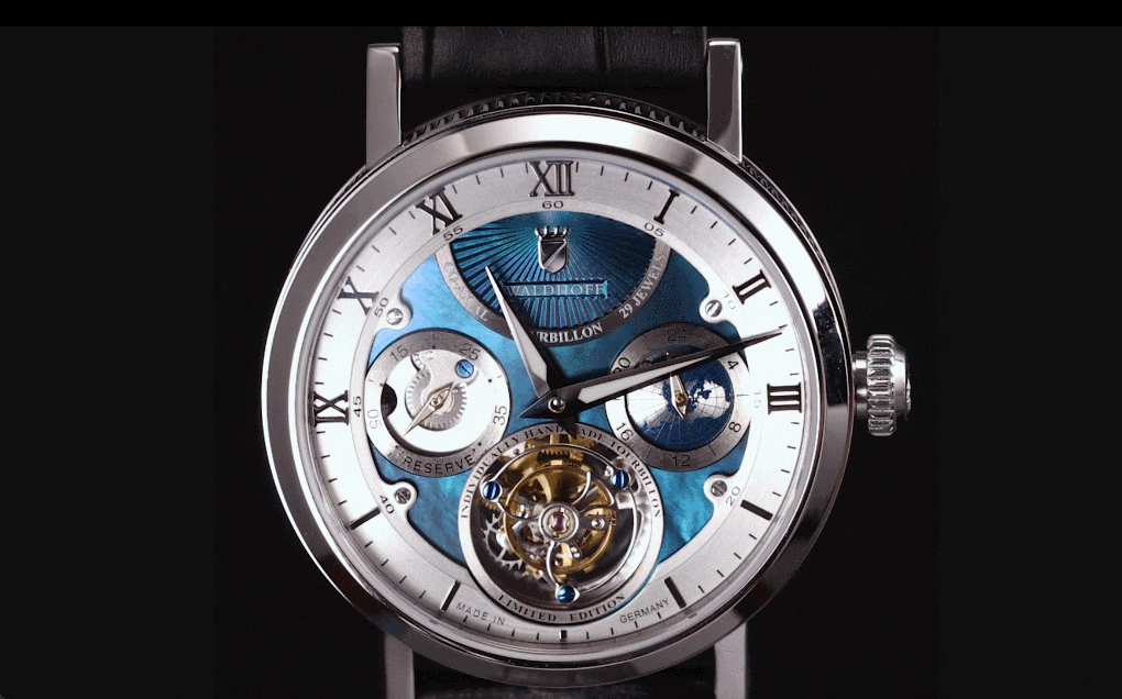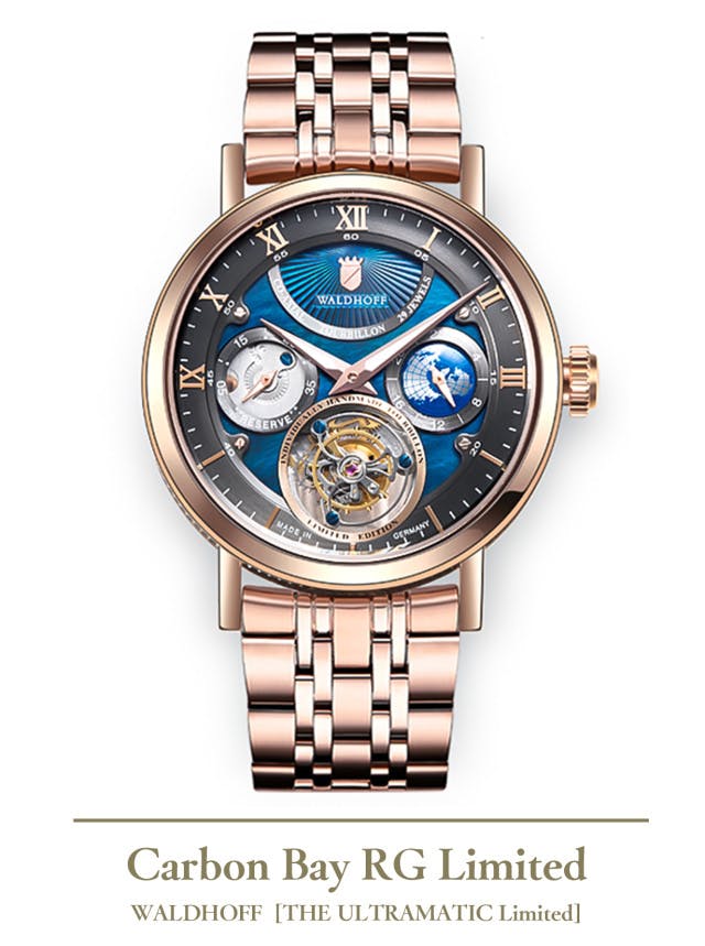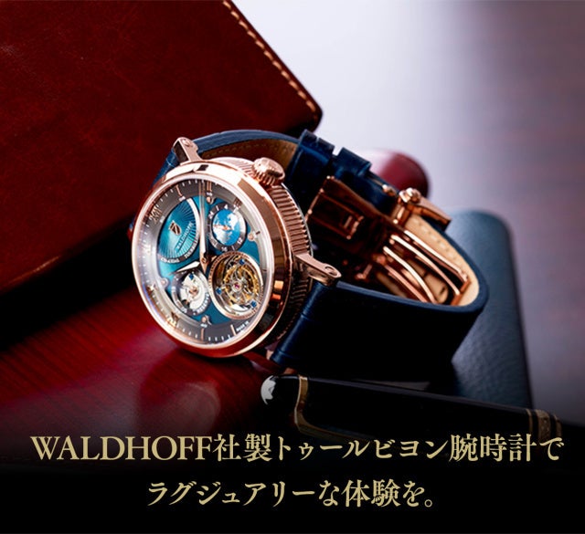 ヨーロッパ高級腕時計の伝統を継ぐWALDHOFF社製トゥールビヨンの醍醐味を、是非この機会にお手元でお楽しみください。