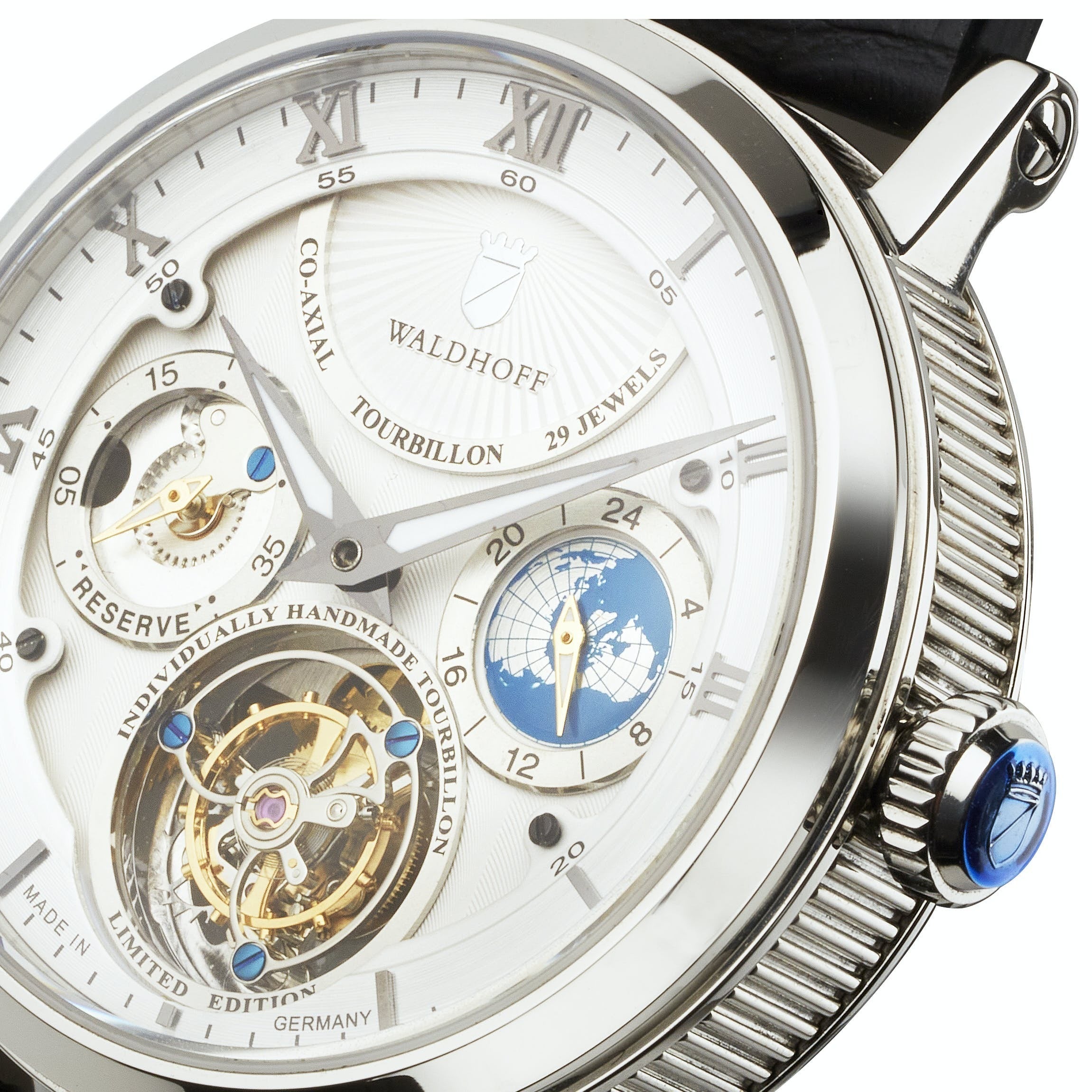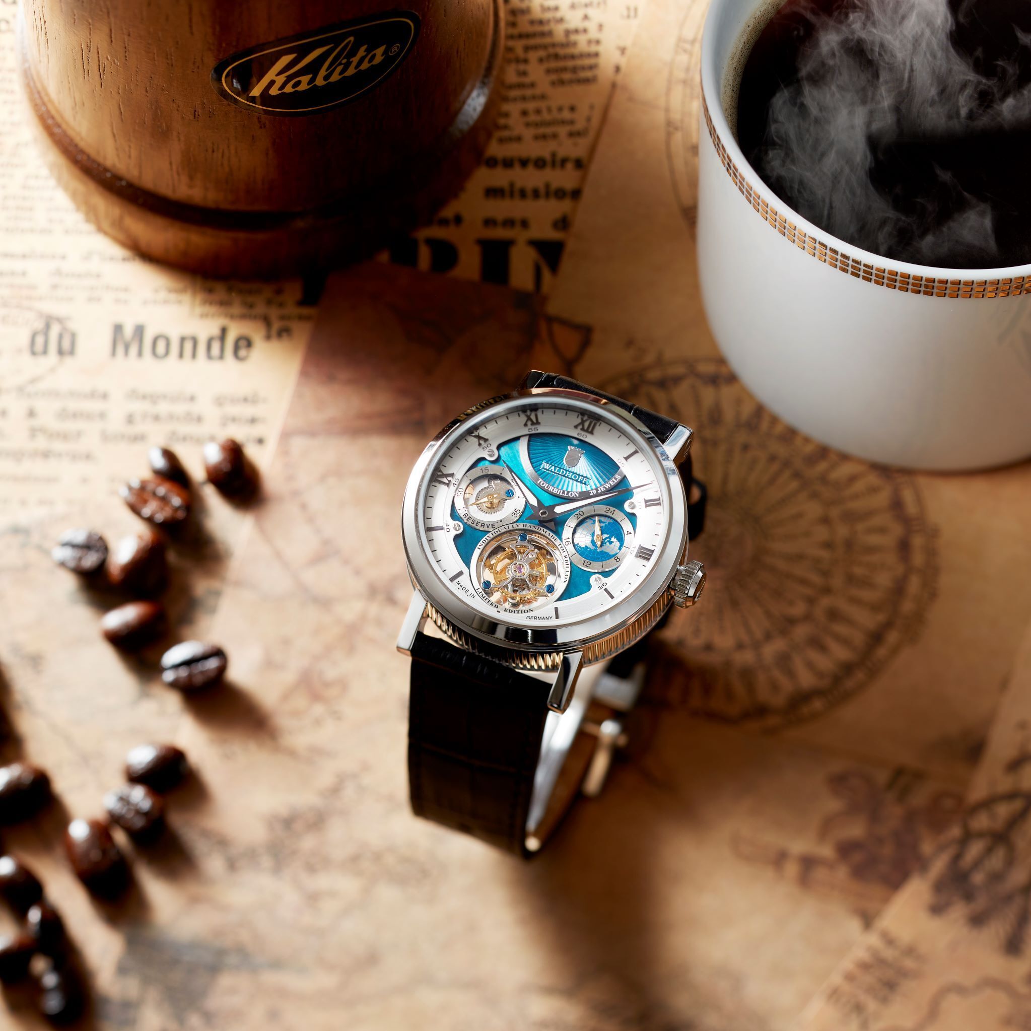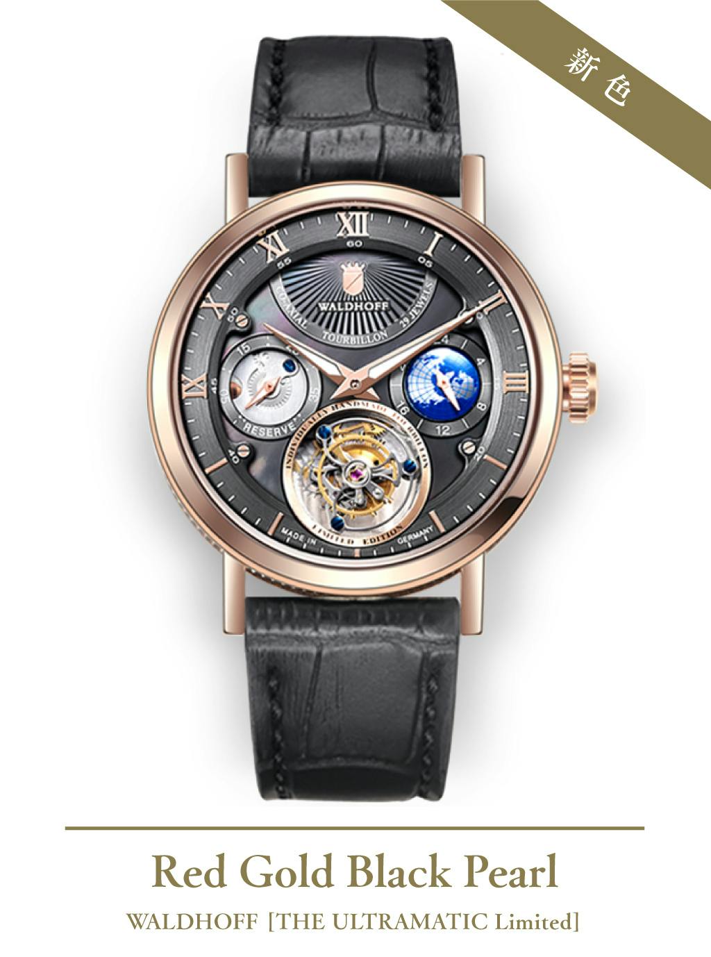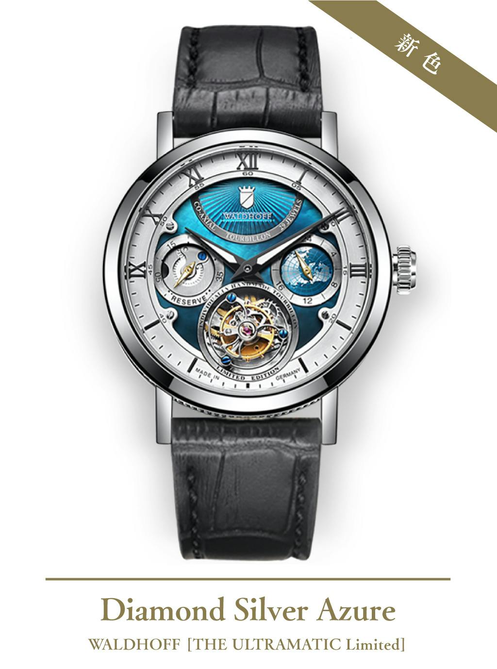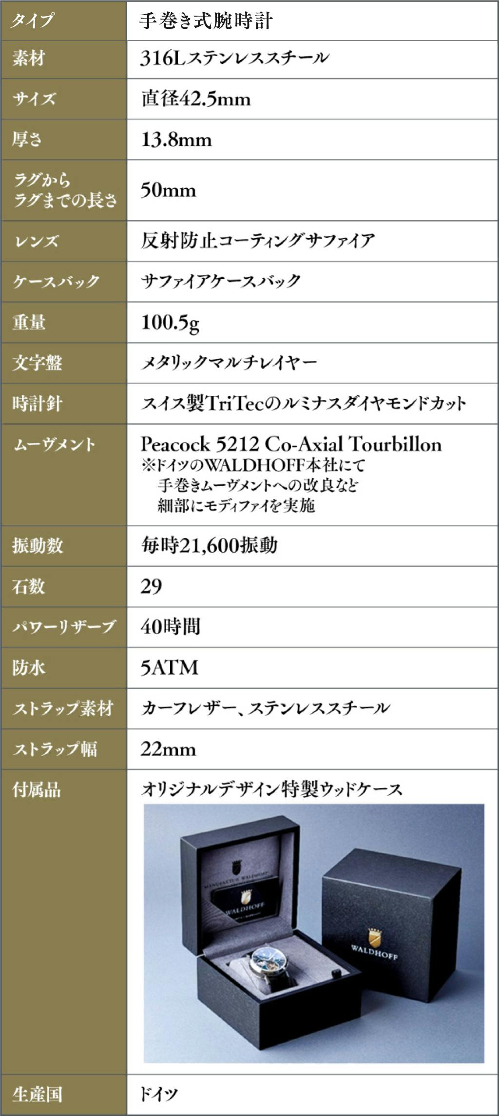 ヨーロッパ高級腕時計の伝統を継ぐWALDHOFF社製トゥールビヨンの醍醐味を、是非この機会にお手元でお楽しみください。
