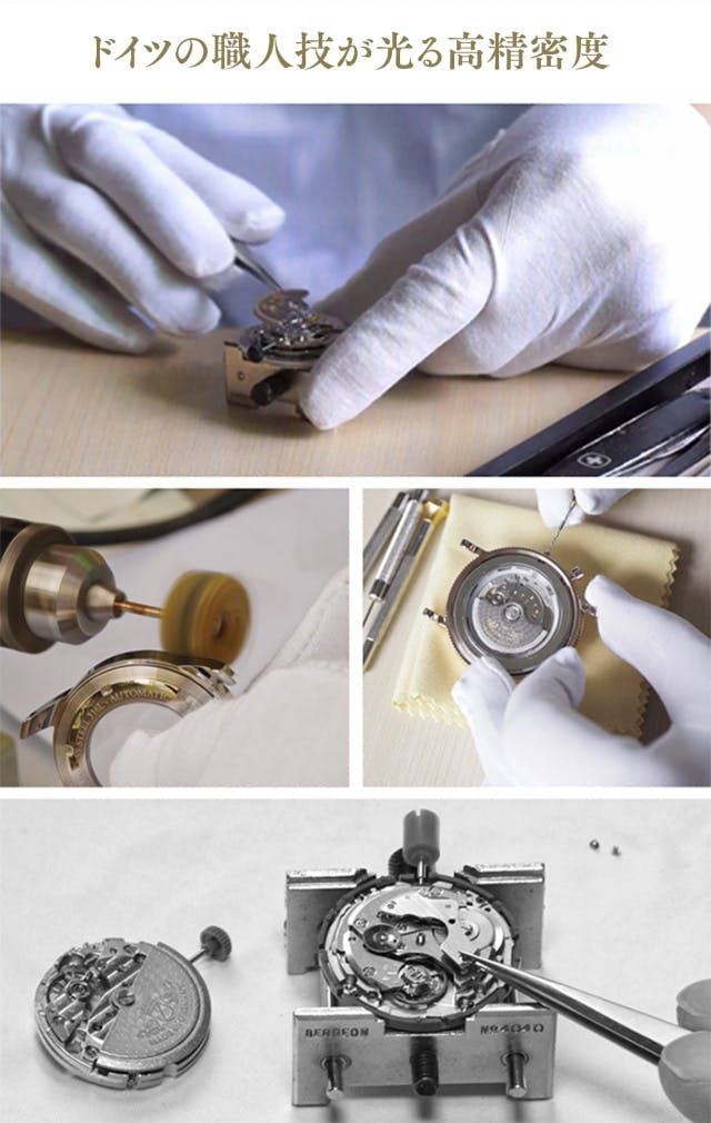 自社工房で自動巻きから手巻きへの改良に加え、美しさと精度をさらに高めた、ドイツブランドならではのこだわりと重厚感を感じさせるヨーロッパ正統の芸術品をお届けします。