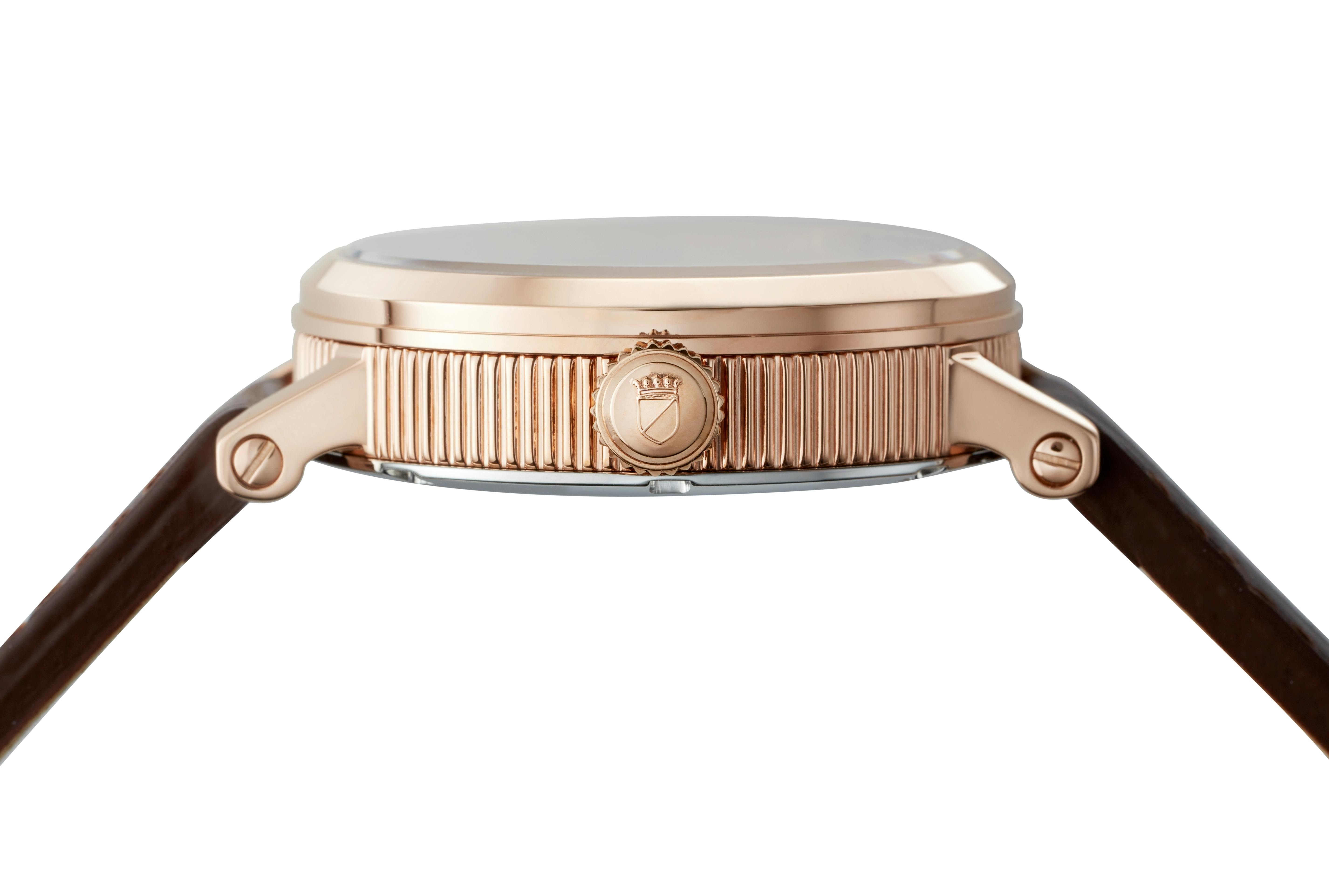 自動巻きムーヴメントをわざわざ手巻きに改良したのは、デザインバランスと精度をさらに高めるためです。