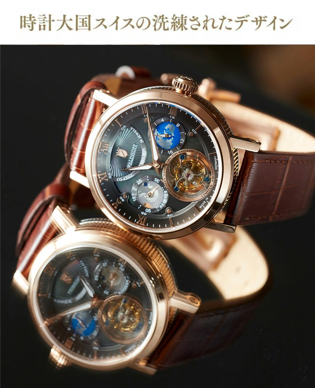WALDHOFF社の『トゥールビヨンコレクション』は、高級腕時計で世界にその名が知られるスイスのデザイナーが手掛けています。