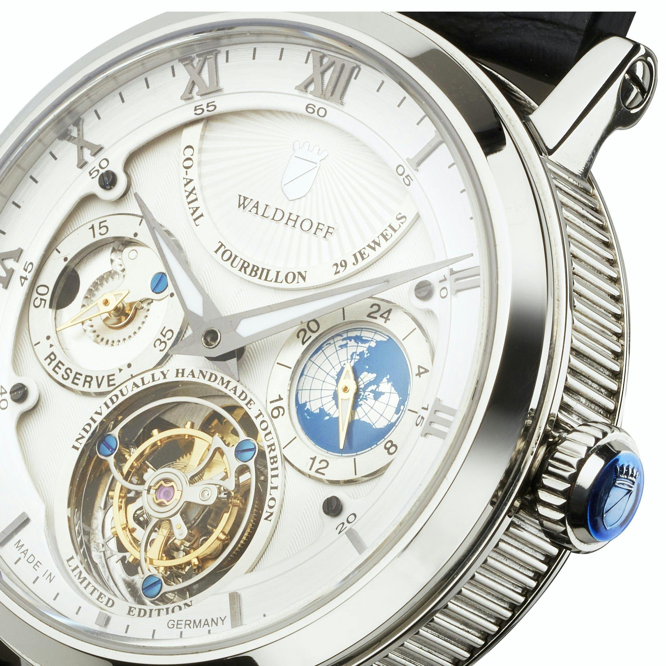 WALDHOFF社のトゥールビヨンはケースや風防といったパーツ一つひとつもこだわり抜いた逸品。