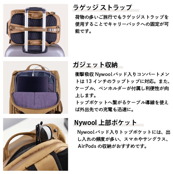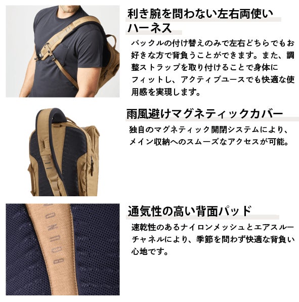 また、サブポケットを左右に配したことで、利き腕や背負う方向に関係なく、ポケットへ素早く、そして快適にアクセスできるようになりました。