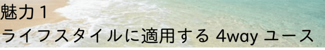アクティブシーンでも汚れを気にせずラフに利用できるのは嬉しいです。