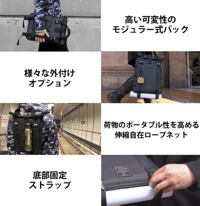 バックパック、メッセンジャーバック、ハンドバック、クラッチバックと4つのスタイルでの使い分けが可能となり、ライフスタイルに合わせた活用を実現いたします。
