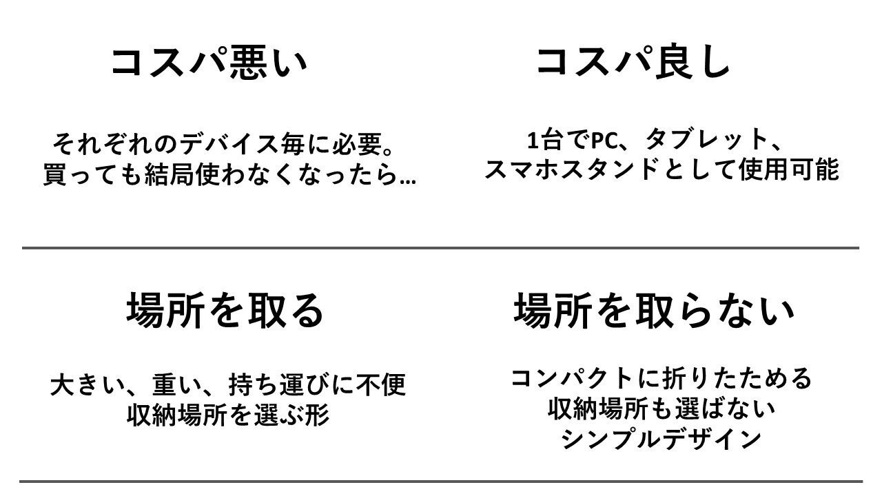 スマホ、タブレット、PCをカバーしたスタンドはなかなかなく、