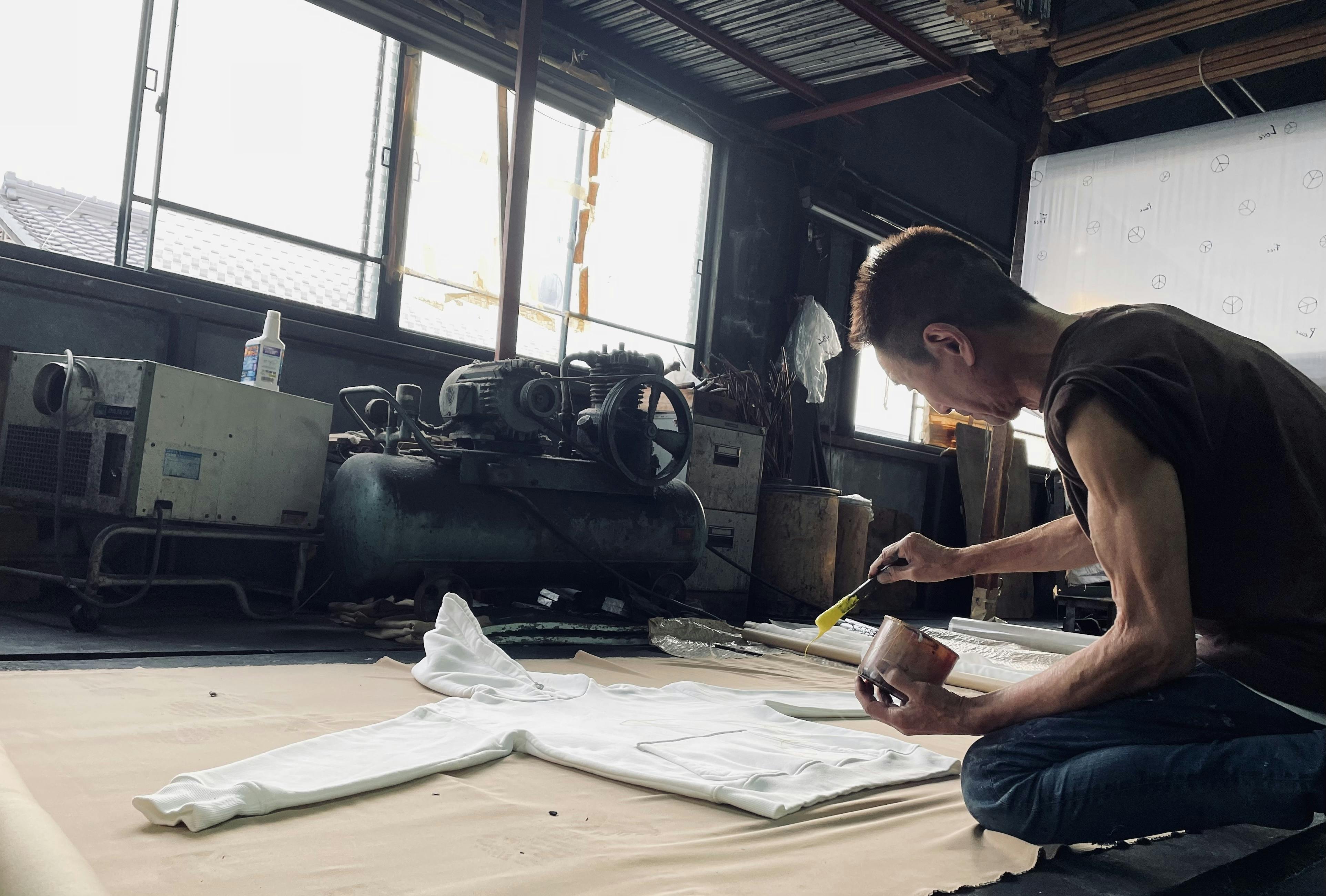 広幅(アパレル・インテリア用)の手描き染色ができる世界的にも珍しい工房です