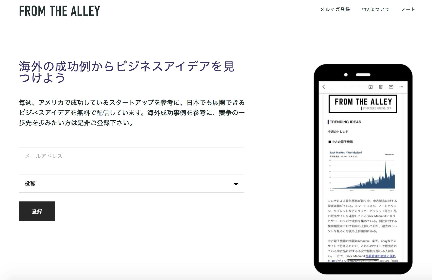 From the Alleyは、アメリカで注目されているスタートアップを参考に、日本でも展開できそうなビジネスチャンスを配信するメルマガです。