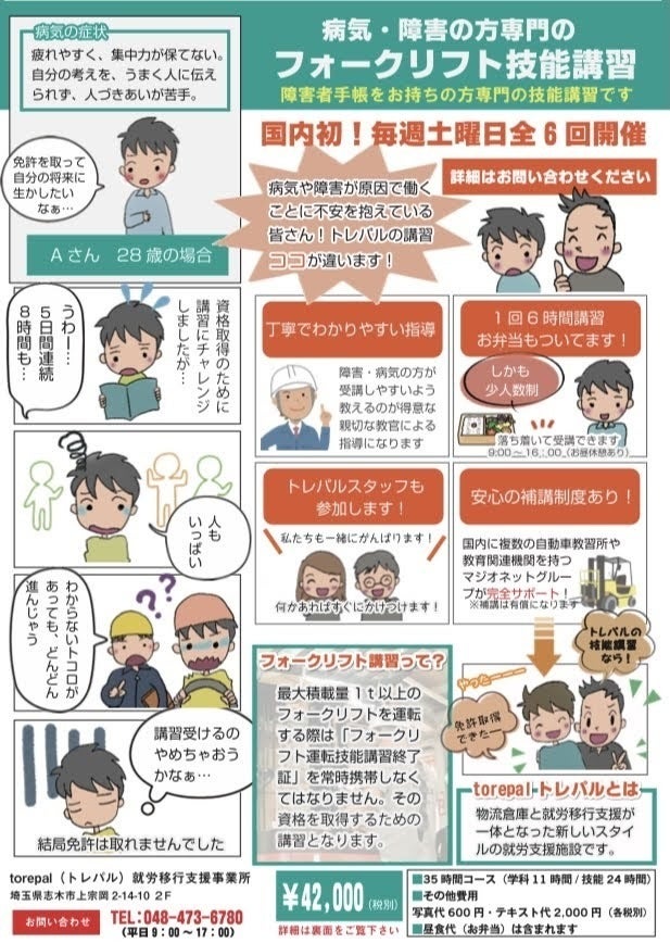 障害や病気がある方専門のフォークリフト技能講習をトレパルの環境で受講料0円を実現したいです。