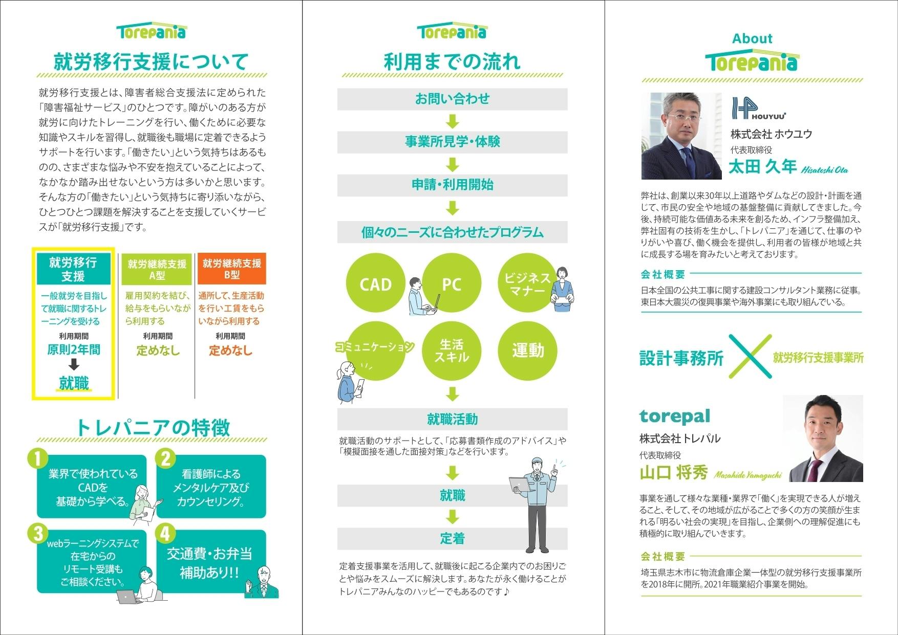 2022/08/11 11:31ご無沙汰しております。(株)トレパルの山口です。クラウドファンディングの際では大変お世話になりまして誠に有難うございます。その後、フォークリフト技能講習を受けた方の中で運送会社で就職が決まった方も出ました!!今回は短期間で退職してしまいましたが、次も運送会社を目指し就職活動に励んでいます。また今回のクラウドファンディングを通して新たな事業が生まれましたのでご報告いたします。リターンに【障害者雇用なんでも相談室コース】で関係が深まった土木設計事務所の株式会社ホウユウの太田社長とオンラインでCADも学べる就労移行支援事業所を今年5月に開所することができました。トレパニア ホームページトレパニア インスタグラム設計事務所の企業一体型就労移行の誕生です!!!オンラインでビジネスマナーや生活スキルを学べるのはもちろんCADも実際の技術者に学べるという実践的な取り組みで埼玉県外からの利用者さんもご利用いただいています。とは言えまだ開所して数カ月、利用者さんはエリア問わず募集しておりますのでご興味のある方いらしたらご相談ください<m(__)m>CAD業界でも人材不足が深刻と聞いてます。難病の方やハンディキャップのある方が企業で活躍するお手伝いが出来れば幸いです。※(株)ホウユウ様でも社員さんの7割はテレワークです。トレーニングをオンラインで実施してテレワークも目指せる時代です。※制度上オンラインでも月に1回は対面で振り返り等実施します。 もっと見る