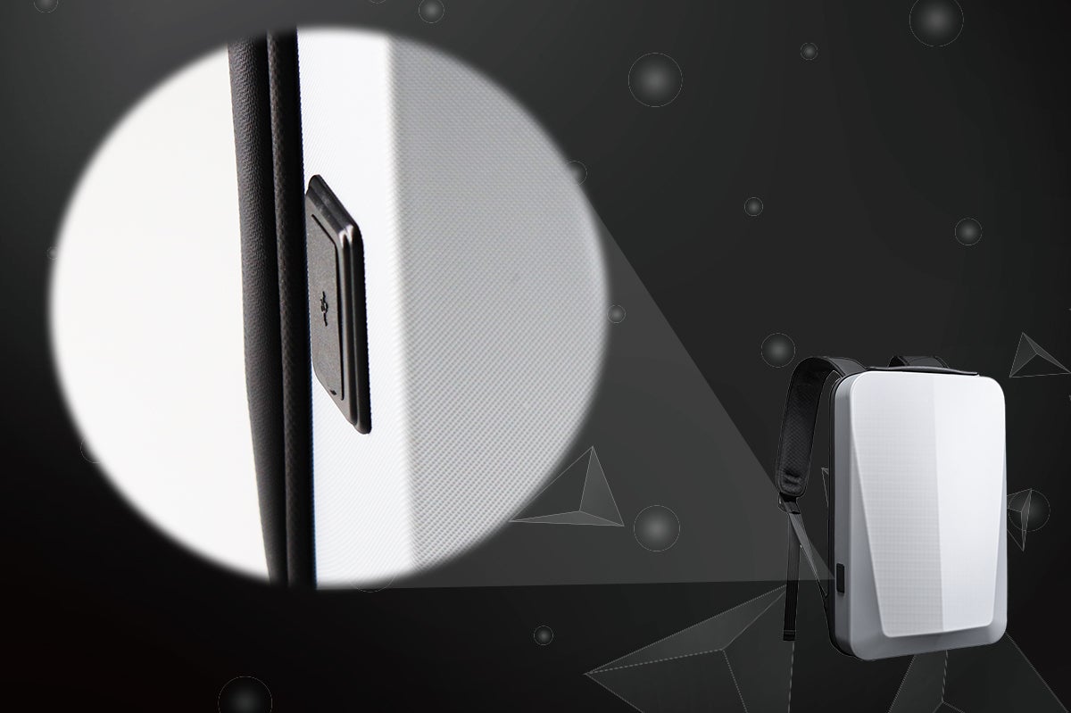 従来のUSBポートはバッグの外側に取り付けるようになっていますが、「B&G」リュックは従来型とは違い、USBポートを中に設置するようにしています。さらに塵よけのフタがついていて、リュック全体がより美しくなります。