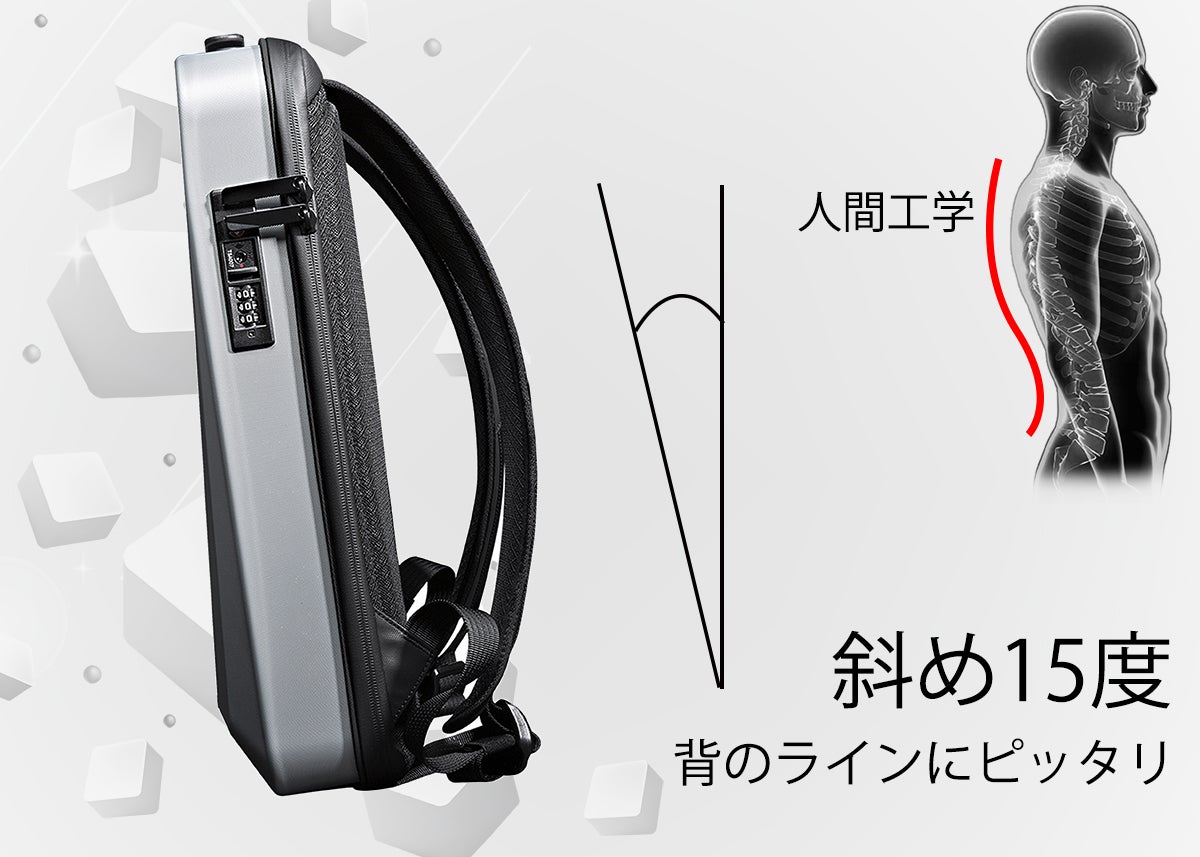 背負った時にリュックが斜め15度に傾き、背中のラインにピッタリ。背部に厚めの柔らかなクッション素材は多層ハニカムメッシュ素材と3Dパールコットンから構成され、優れた圧力分散効果を持つ以外、通気性と衝撃吸収性にも優れ、背中の蒸れを防ぎ、持ち運びをより快適にします。