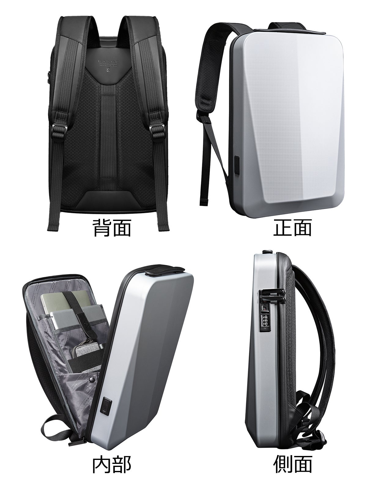リュックの外部はスタイリッシュで美しい一体化したデザイン。通常のリュックとは大部イメージが違い、個性的かつユニークなルックスの上、高級感が醸し出しています。まさにビジネスマンのために作られる芸術品です。
