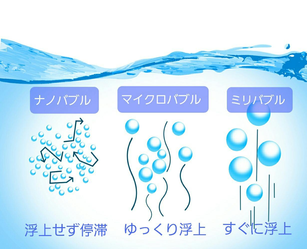 家庭用では100nm程度の生成が一般的とされていたナノバブルを