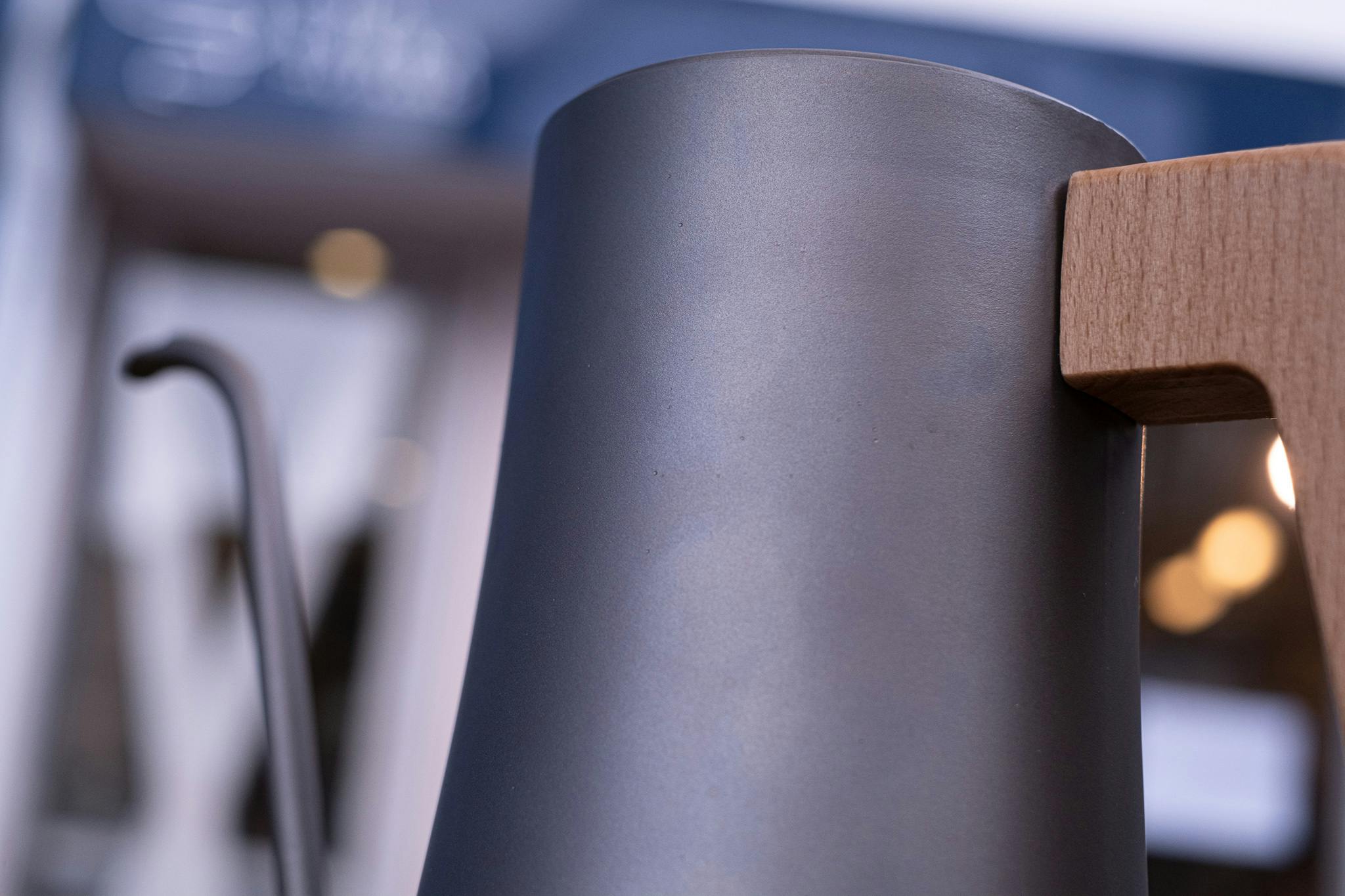 チタンケトル「FLOW」は、金属素材と木材という全く異なる素材を組み合わせることで、外観の美しさと機能性を両立しました。