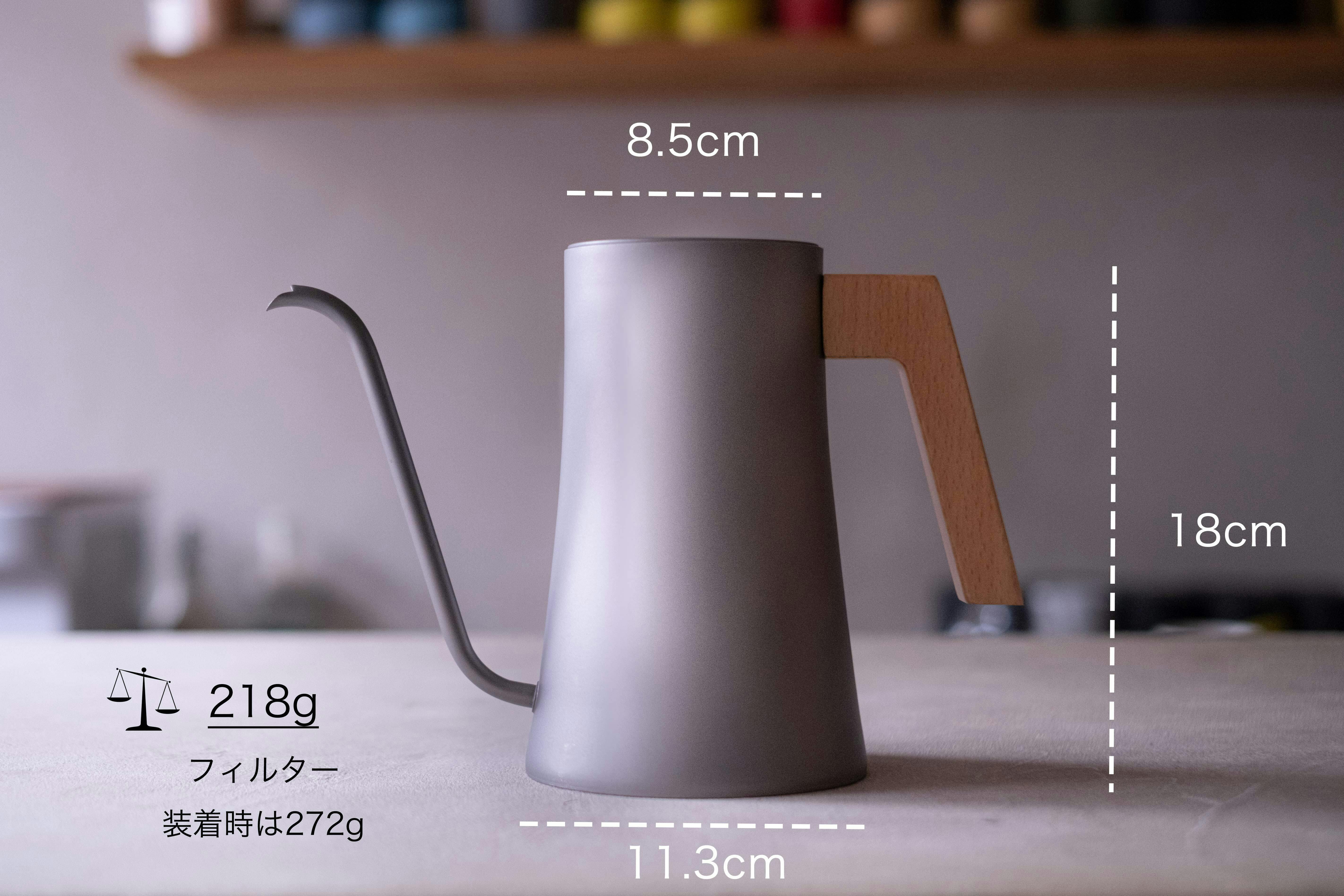 また「湯量調節のしやすさ」にも工夫を凝らしました。注ぎ口の先端に向けて開いた形状にすることで、湯量のコントロール性を高めています。