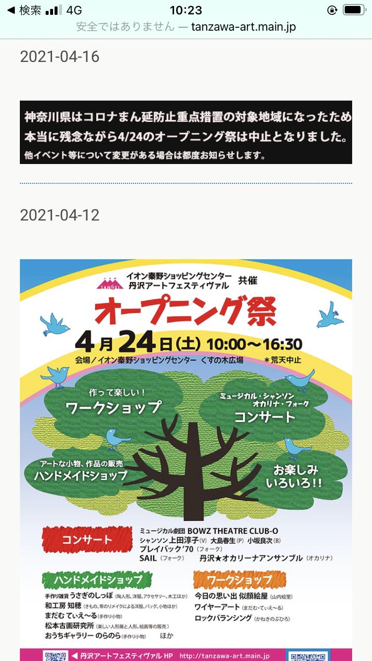 丹沢アートフェスティバルオープニングイベント中止により場所変更のお知らせ